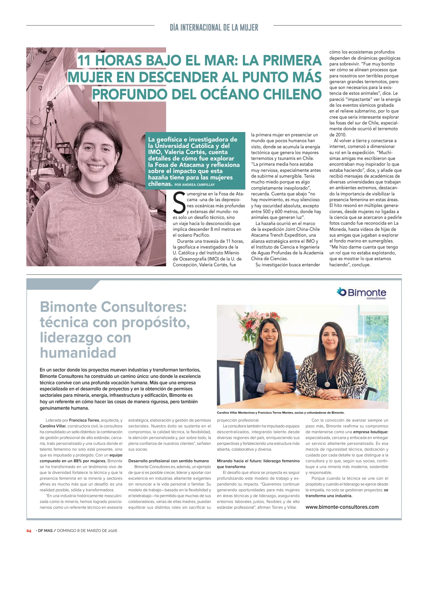 La geofísica e investigadora del Instituto Milenio de Oceanografía, Valeria Cortés Rivas, se convirtió en la primera mujer en descender 8.000 m a la Fosa de Atacama. La expedición fue coliderada por el IMO, institución alojada en la UdeC. La hazaña reveló claves sobre ecosistemas profundos.