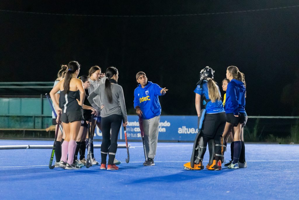 El entrenador de Hockey UdeC, Juan Manuel Herrera, reveló cómo han sido las jornadas de trabajo en el gramado sintético del Club Deportivo Alemán: “Hemos estado trabajando la intensidad en los duelos individuales, tanto ofensivos como defensivos, y luego la técnica individual de los pases”.