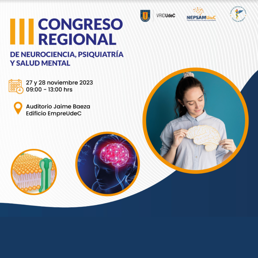 El próximo lunes 27 y martes 28 de noviembre, se realizará en la Universidad de Concepción, UdeC, el III Congreso Regional de Neurociencia, Psiquiatría y Salud Mental, organizado por Nepsam -programa de la Vicerrectoría de Investigación y Desarrollo (VRID) de esta casa de estudios- como una oportunidad para reunir a investigadores y profesionales de diversas disciplinas asociadas a la salud mental y otras áreas relacionadas, además de público general interesado en estas temáticas.