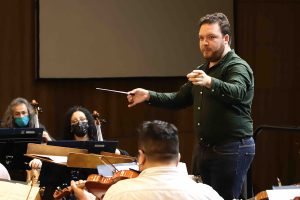El maestro Sebastián Camaño llevó la batuta en el concierto que se realizó el viernes 29 de julio en el Teatro UdeC.