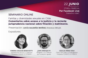 Hoy a las 17:00 horas se desarrollará “Familias y diversidades sexuales en Chile. Comentarios sobre acceso a la justicia y la reciente jurisprudencia nacional sobre filiación y matrimonio”, organizado por la Dirección de Equidad de Género y Diversidad (DEGyD) y el Comité de Extensión de la Facultad de Ciencias Jurídicas y Sociales UdeC.