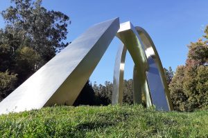 La escultura de acero inoxidable y carácter abstracto consta de un conjunto de tres arcos —el más alto sobre los 8 metros— con los que la artista Claudia Soto busca hacer «una metáfora del caminar, del aprender y aprehender que representa la Universidad».