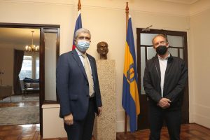 El docente, que postula por segunda vez a la primera magistratura del país, sostuvo una reunión con la máxima autoridad universitaria en la previa de su participación en «Presidenciales en Medios UdeC».