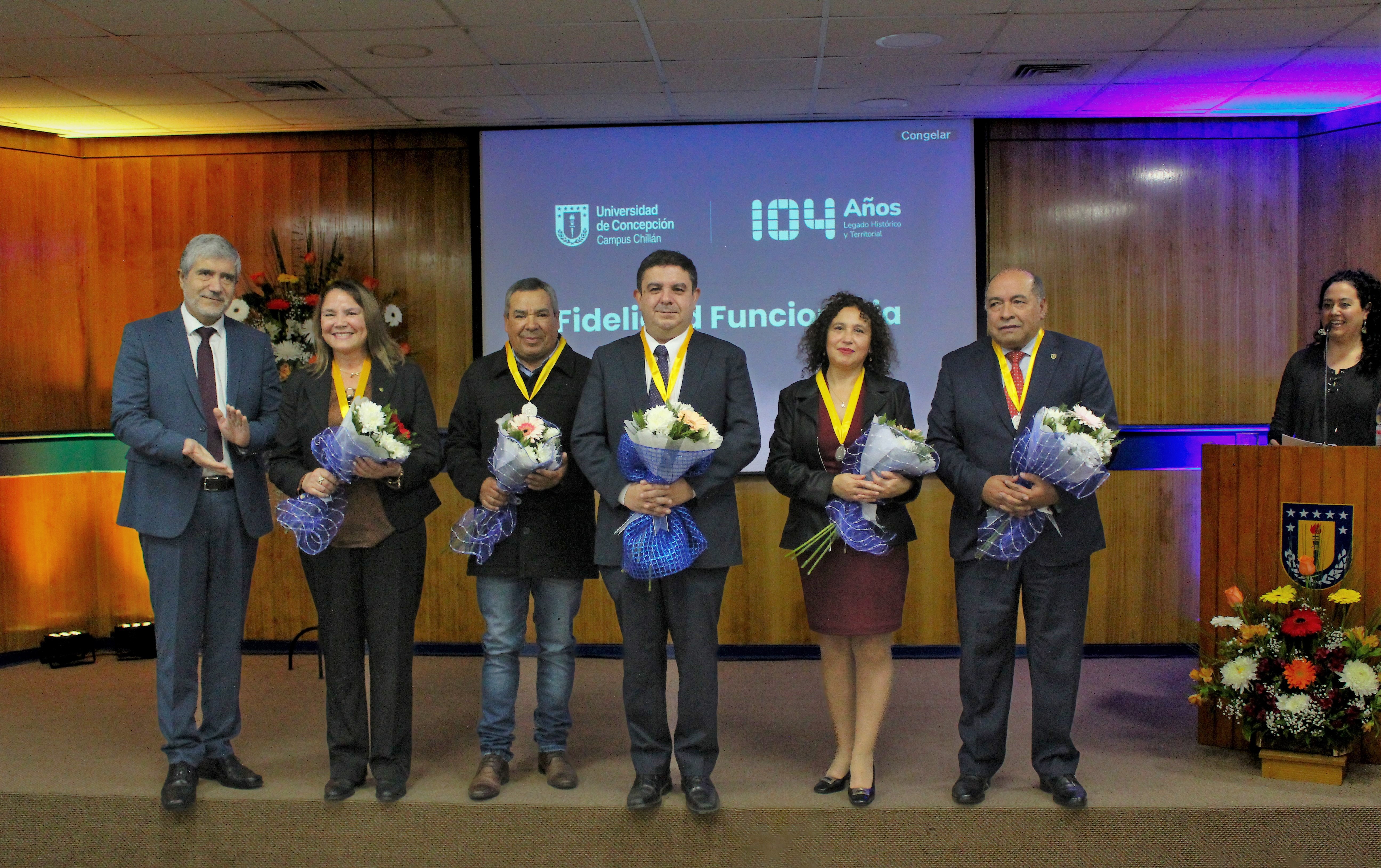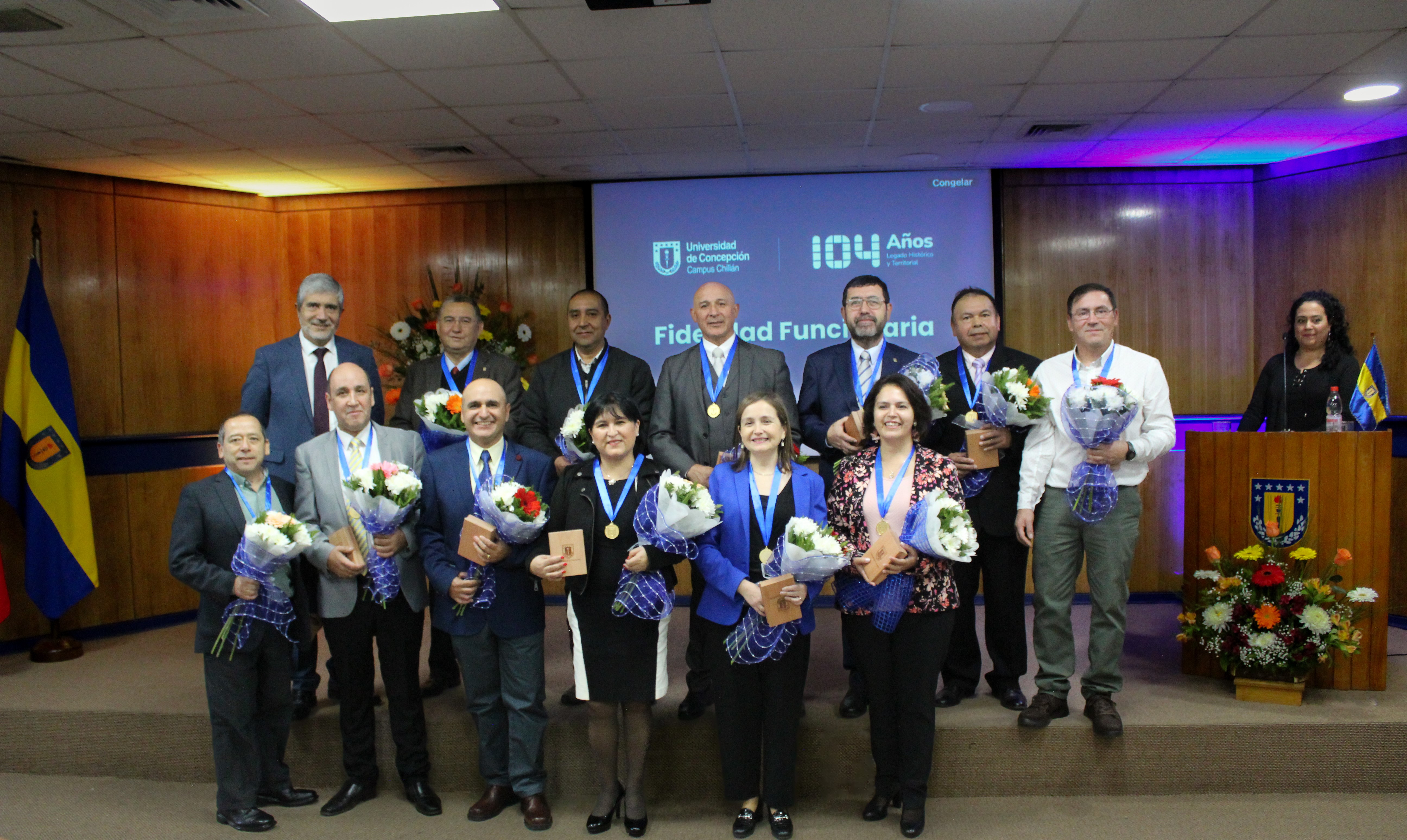 Celebrando los 104 años de Aniversario de la Universidad de Concepción, 69 de ellos del Campus Chillán, es que este miércoles 17 de mayo se llevó a cabo la ceremonia Fidelidad Funcionaria, en el marco del Día de la Trabajadora y Trabajador Universitario. En la instancia se reconoció a quienes han realizado sus labores de manera ininterrumpida por 25, 30, 35, 40 y 45 años en la Casa de Estudios.