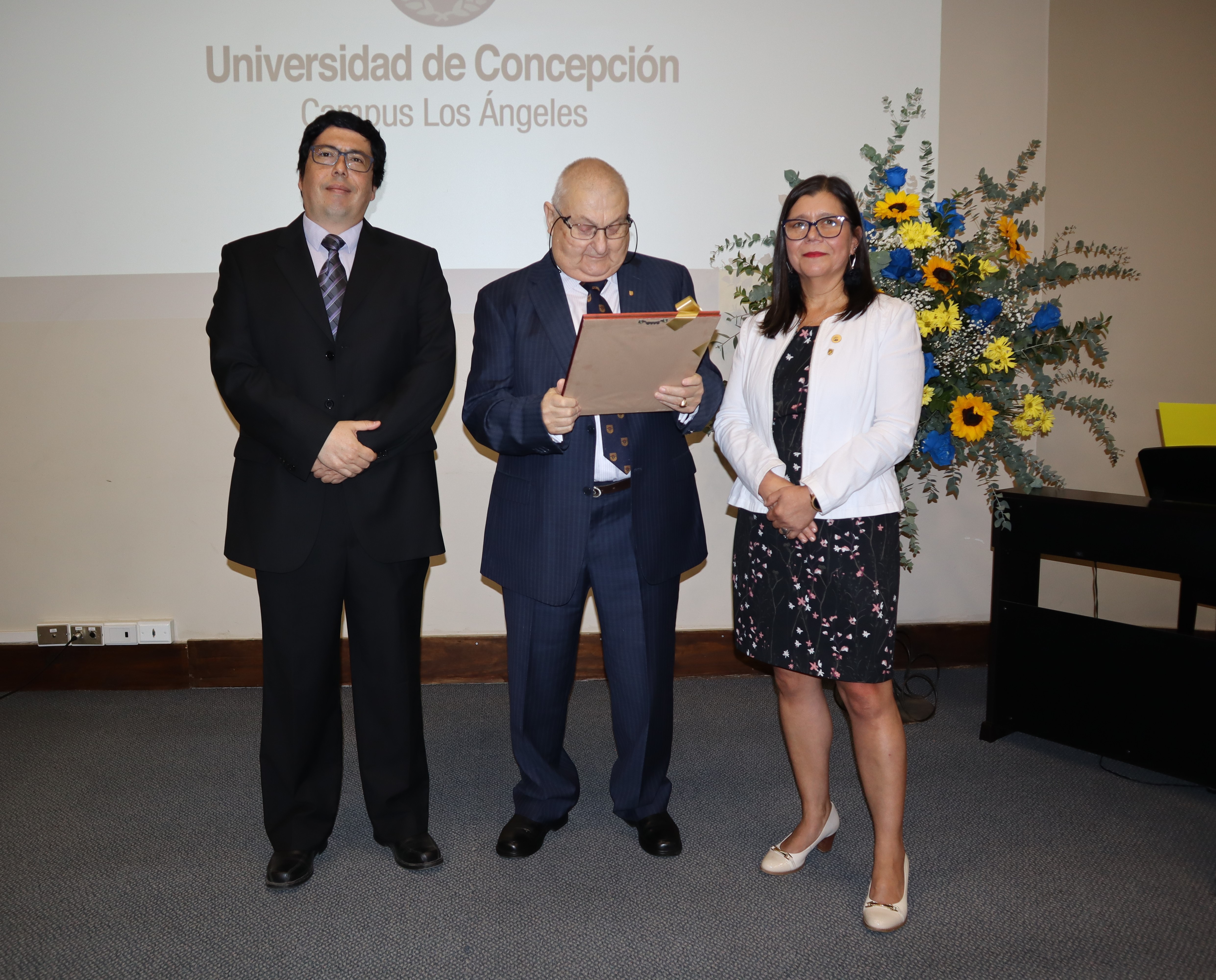 “Es por todo esto que sus pares buscaron realizar un reconocimiento a lo realizado en beneficio de nuestro Campus y también como una forma de agradecer su entrega y permanente apoyo en los proyectos académicos y de infraestructura, los cuales han ido engrandeciendo nuestra querida Universidad en la ciudad de Los Ángeles”, agregó la directora.