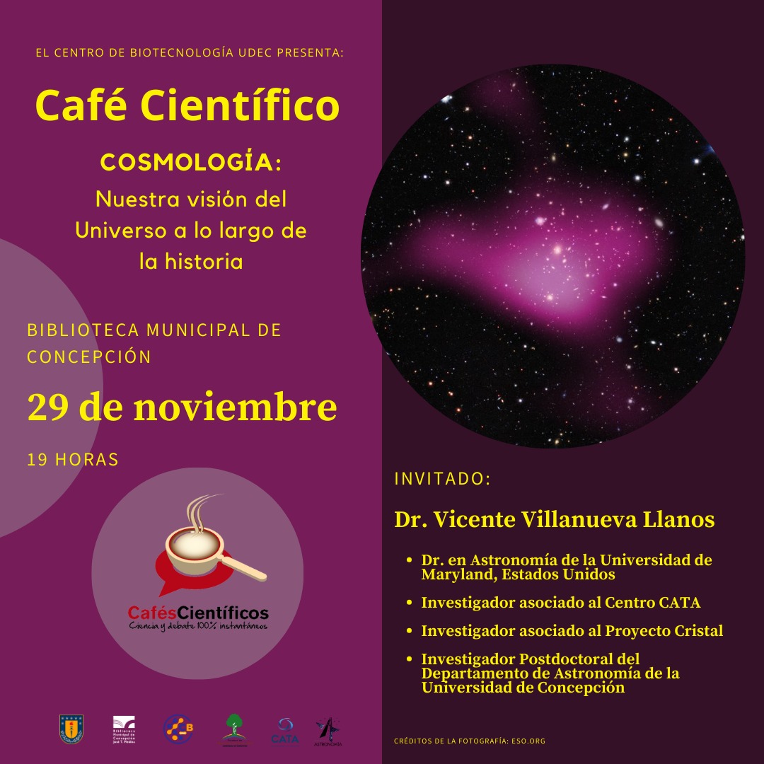 El próximo 29 de noviembre tendrá lugar la octava y última jornada de Cafés Científicos de 2023, organizados por el Centro de Biotecnología y que contará nuevamente con la participación del Departamento de Astronomía de la Universidad de Concepción.