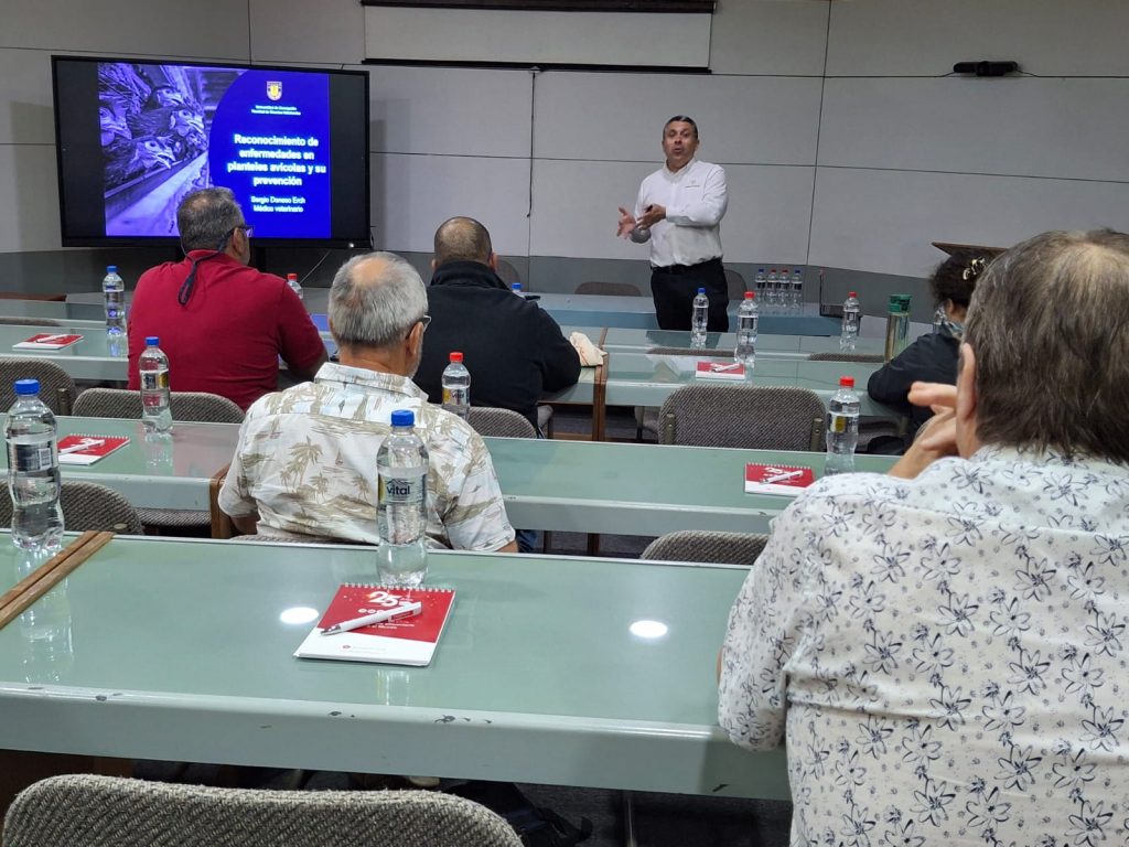 En la oportunidad destacó la presentación realizada por el patólogo y Director del Departamento de Patología y Medicina Preventiva UdeC, Dr. Sergio Donoso, quien ahondó en el tema de la detección y reconocimiento de enfermedades. “Las enfermedades son una realidad en toda producción de avícola, por lo que es necesario conocer sus agentes causales, sus mecanismos de transmisión y de forma especial como reconocer sus síntomas y lesiones, que permitan un diagnóstico temprano de ellas, además, de las medidas y manejos necesarios de implementar para minimizar los riesgos de entrada de un patógeno a un plantel.