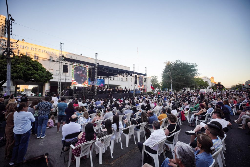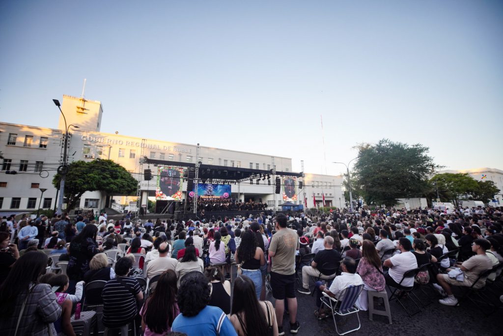La música sinfónica y el espíritu navideño se tomaron la explanada del Gobierno Regional de Ñuble, en Chillán, con la presentación del tradicional concierto “Sinfonía de Navidad”, a cargo de la Orquesta y el Coro Sinfónico de la Universidad de Concepción.
