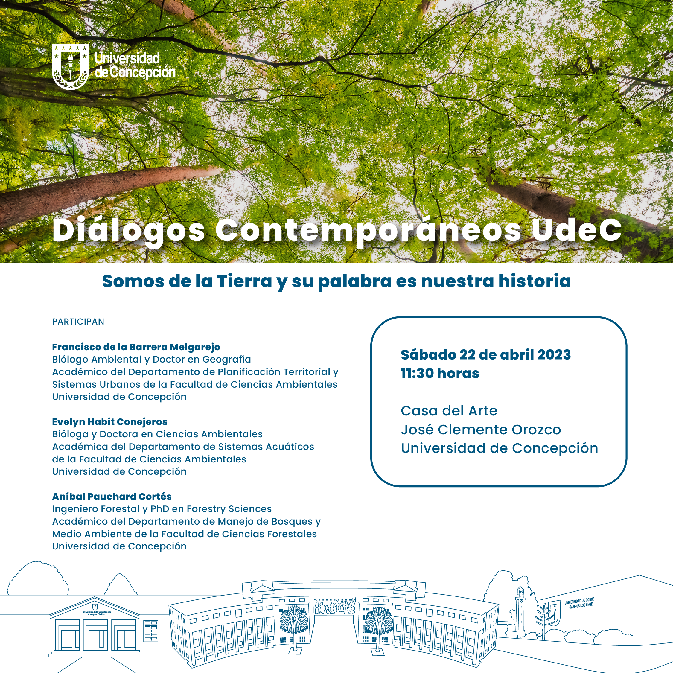 Los diálogos corresponden a un espacio de conversación que tiene por objetivo acercar a la comunidad a la labor de investigación y docencia que se realiza en la casa de estudios. En esta oportunidad, bajo el nombre «Somos de la Tierra y su palabra es nuestra historia», se abordará el Día de la Tierra 2023 y en la ocasión se discutirán temas relacionados al planeta, sus ecosistemas y la responsabilidad que tenemos las sociedades en su cuidado.