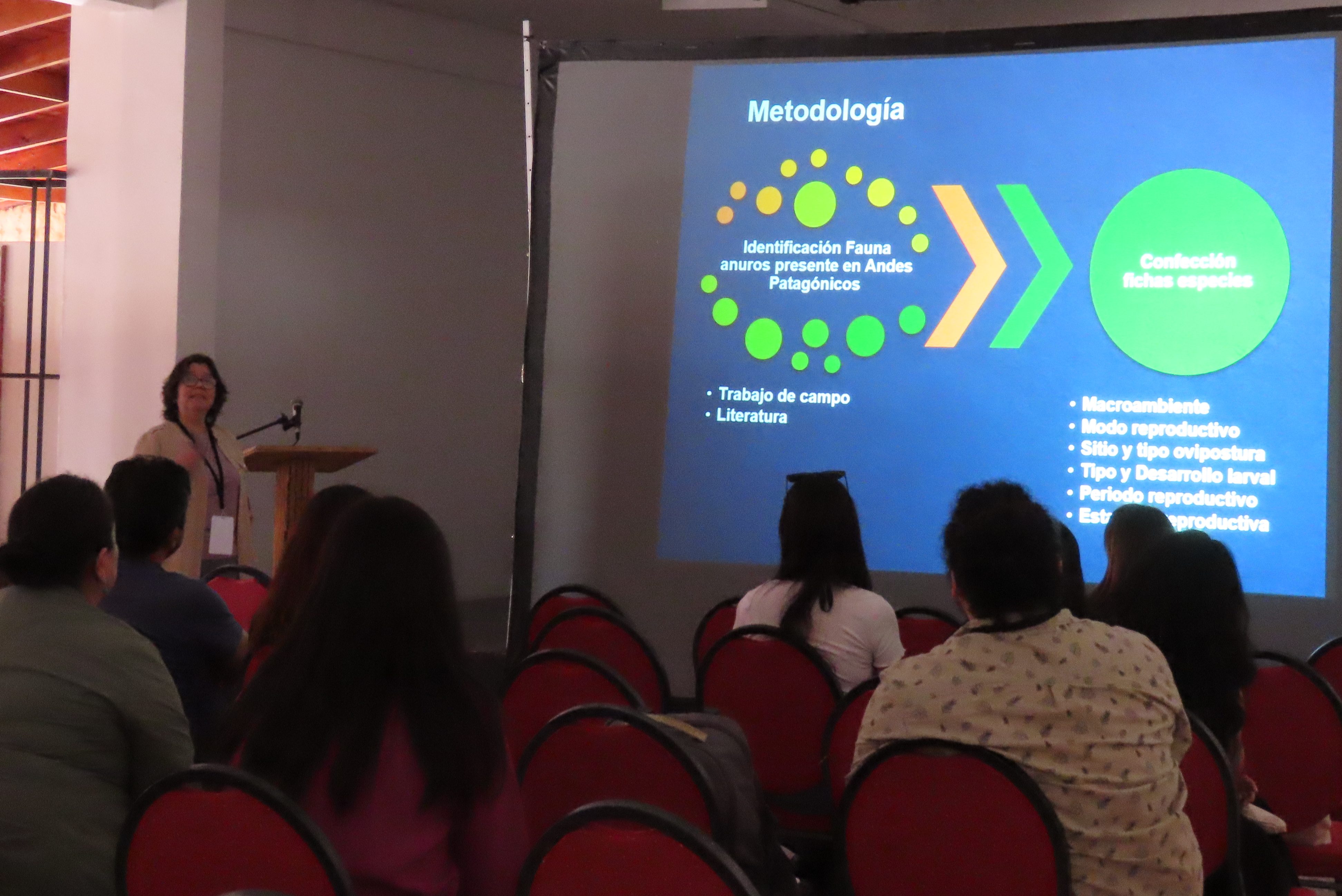 La instancia, que se torno al estudio de reptiles y anfibios, contó con la presentación de la Directora y académica del Campus Los Ángeles de la Universidad de Concepción, Dra. Helen Díaz Páez, con el estudio “Anfibios anuros de los Andes patagónicos: una diversidad poco conocida de estrategias reproductivas y de desarrollo”, desarrollado en conjunto con la Dra. Carmen Úbeda (Universidad del Comahue, Argentina) y el especialista Felipe Rabanal.
