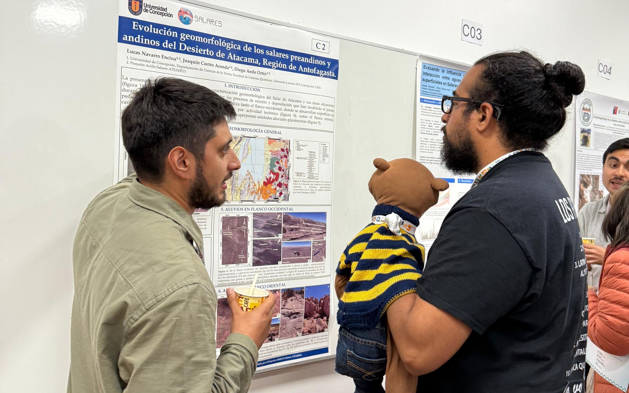 Además del Dr. Cortés, la comitiva UdeC en el encuentro estuvo conformada los y las estudiantes del DCG Maite Aguilar Gómez, Natalia Martínez Torres, Daniela Morales González, Lucas Navarro Encina, Camila Poblete González y Nicolás Orellana Silva, además del geólogo UdeC Bastián Poncell Valenzuela y el investigador postdoctoral Dr. Diego Aedo Ortiz (egresado del DCG en 2024), todos quienes presentaron poster.
