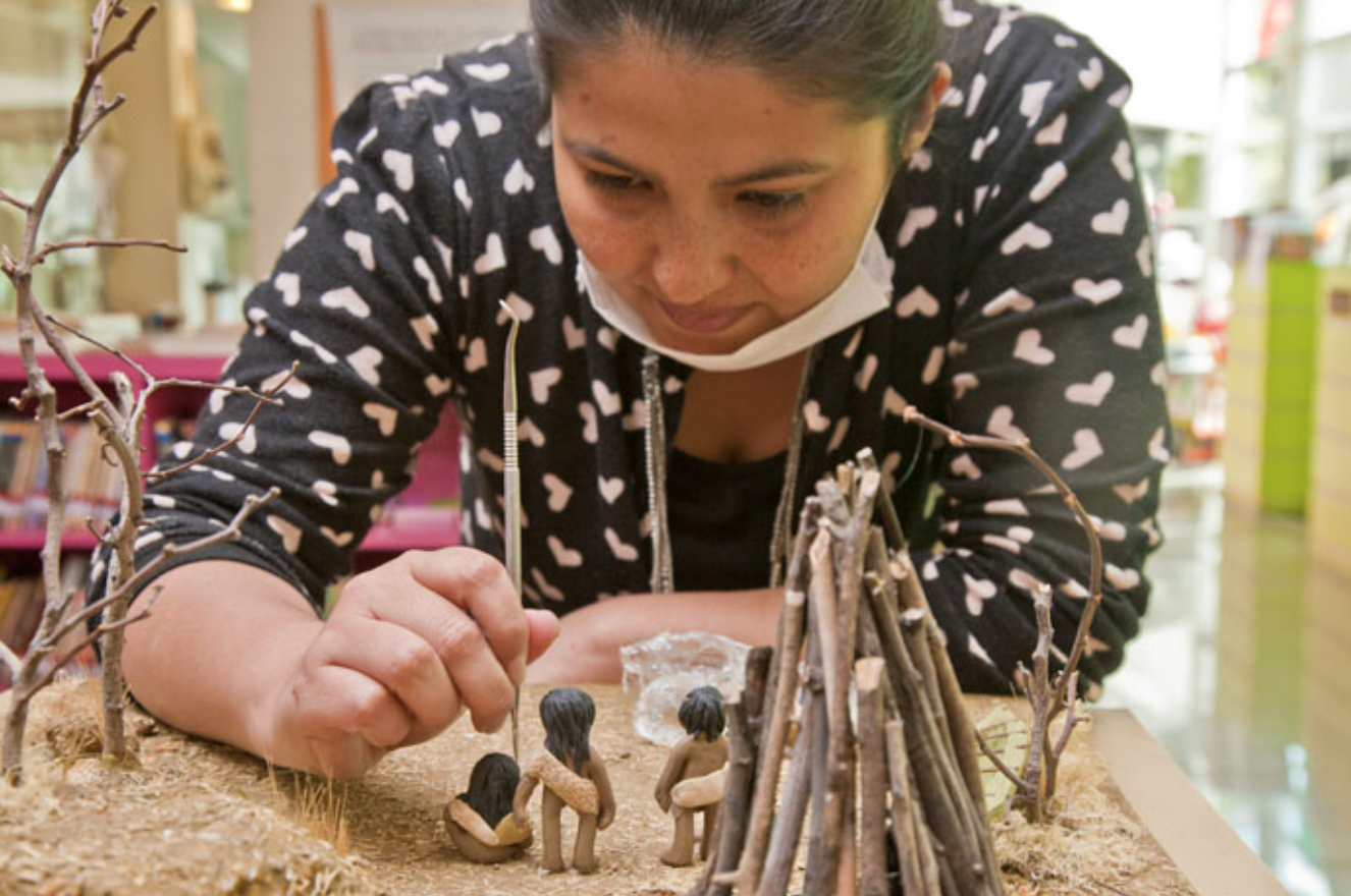 Luego, el gran reto fue dar vida a este joven e intrépido explorador. La artista Cecilia Toro, especialista en la ilustración corpórea, se encargó de ello: “Me encanta la plasticina porque es dúctil y puede imitar cualquier material, como las pieles que visten los habitantes de Tierra del Fuego, o el cuero del equipaje de Darwin cuando subió a la montaña”. Sobre la restauración de la exposición para volver a ser montada en Concepción, la diseñadora industrial y ceramista local, Carlota Durán de Teja Verde Ecodiseño, señala que ha sido un proceso que implicó limpiar, reparar, y estabilizar la obra de dioramas para garantizar que permanezca intacta para otras generaciones y futuras exposiciones. “El proceso comenzó con un diagnóstico de las obras para determinar el alcance y la naturaleza del daño. Luego realizamos una limpieza mecánica y química para eliminar la suciedad, y se repararon los daños estructurales, además almacenamos la obra de manera adecuada para evitar daños por factores ambientales”, destacó la artista.