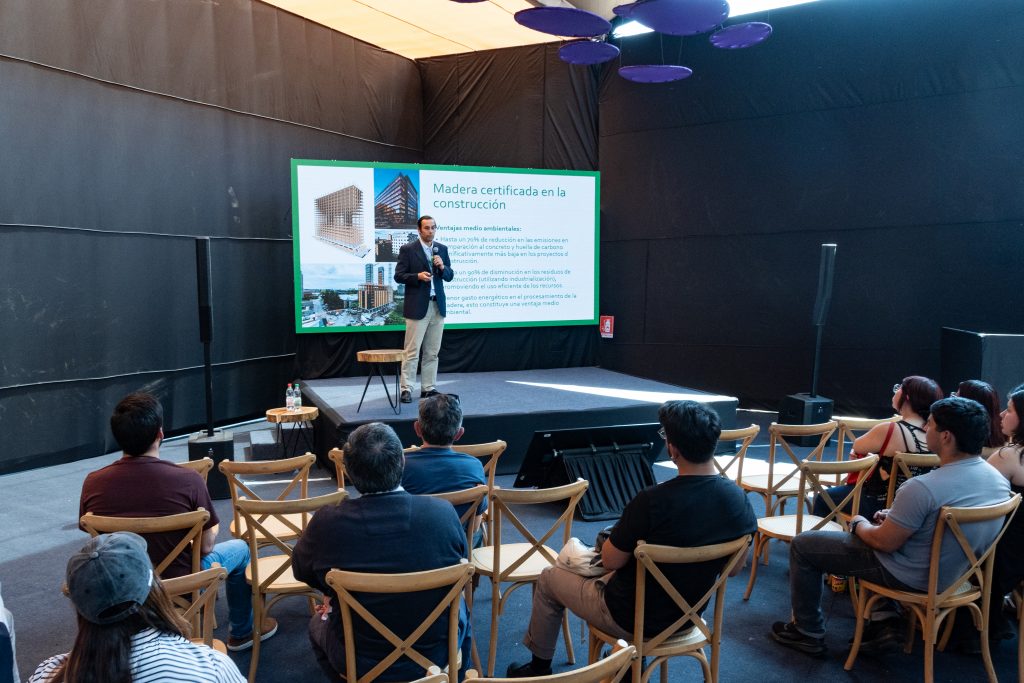Durante la Feria, el académico del Departamento de Manejo de Bosques y Medio Ambiente de la Facultad de Ciencias Forestales, Vicente Hernández Castillo, presentó la charla “Sostenibilidad, resiliencia y desarrollo urbano: el rol estratégico de los bosques y la madera”.