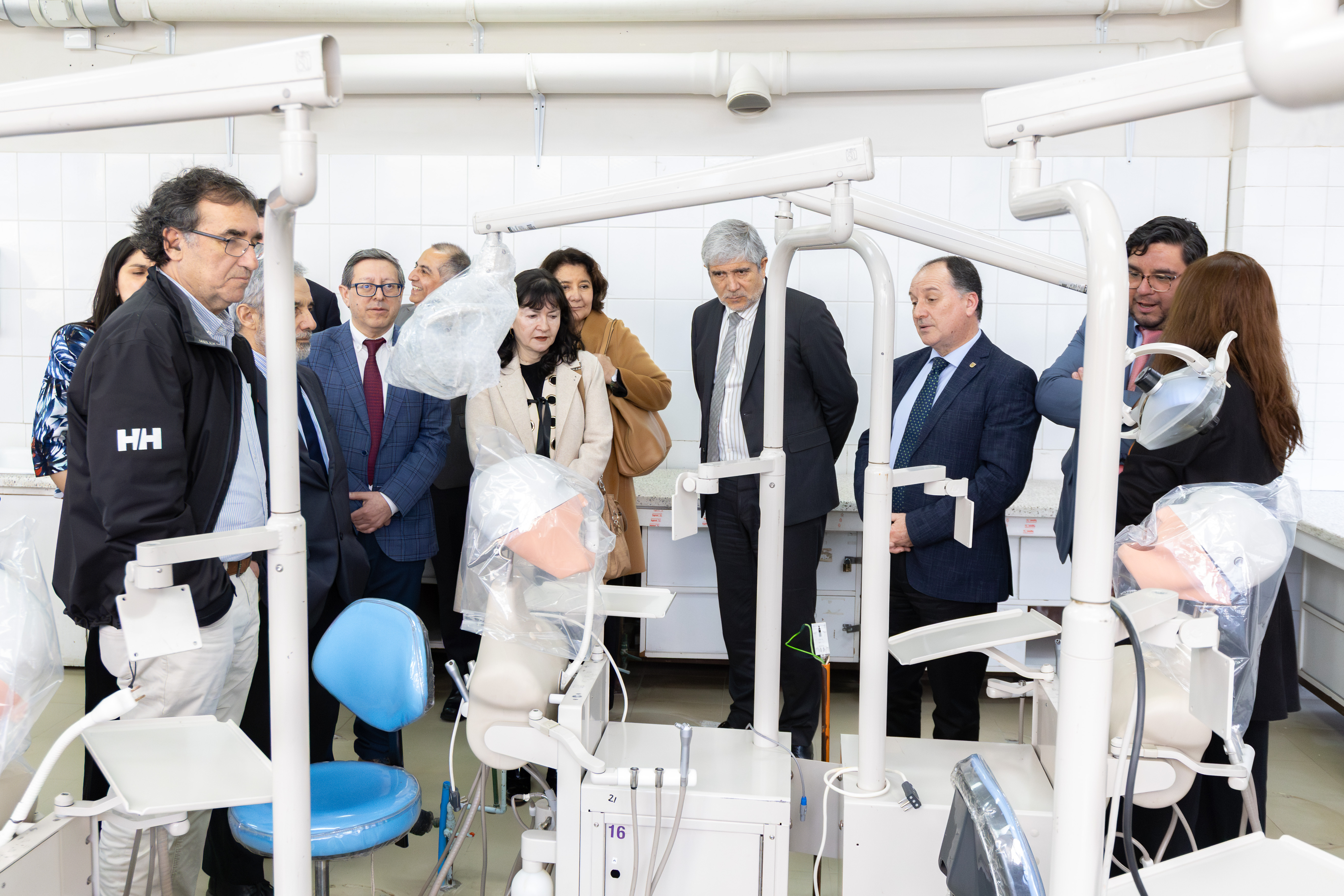 El Rector expresó su alegría por “el desarrollo que ha tenido este trabajo colaborativo entre la Facultad de Odontología y los equipos de la administración central en diversos ámbitos: docencia, postgrado, adquisiciones, finanzas, van construyendo ese acervo de conocimientos que nos permiten ir generando planificaciones para la renovación periódica y sistemática del equipamiento en proceso formativo”.