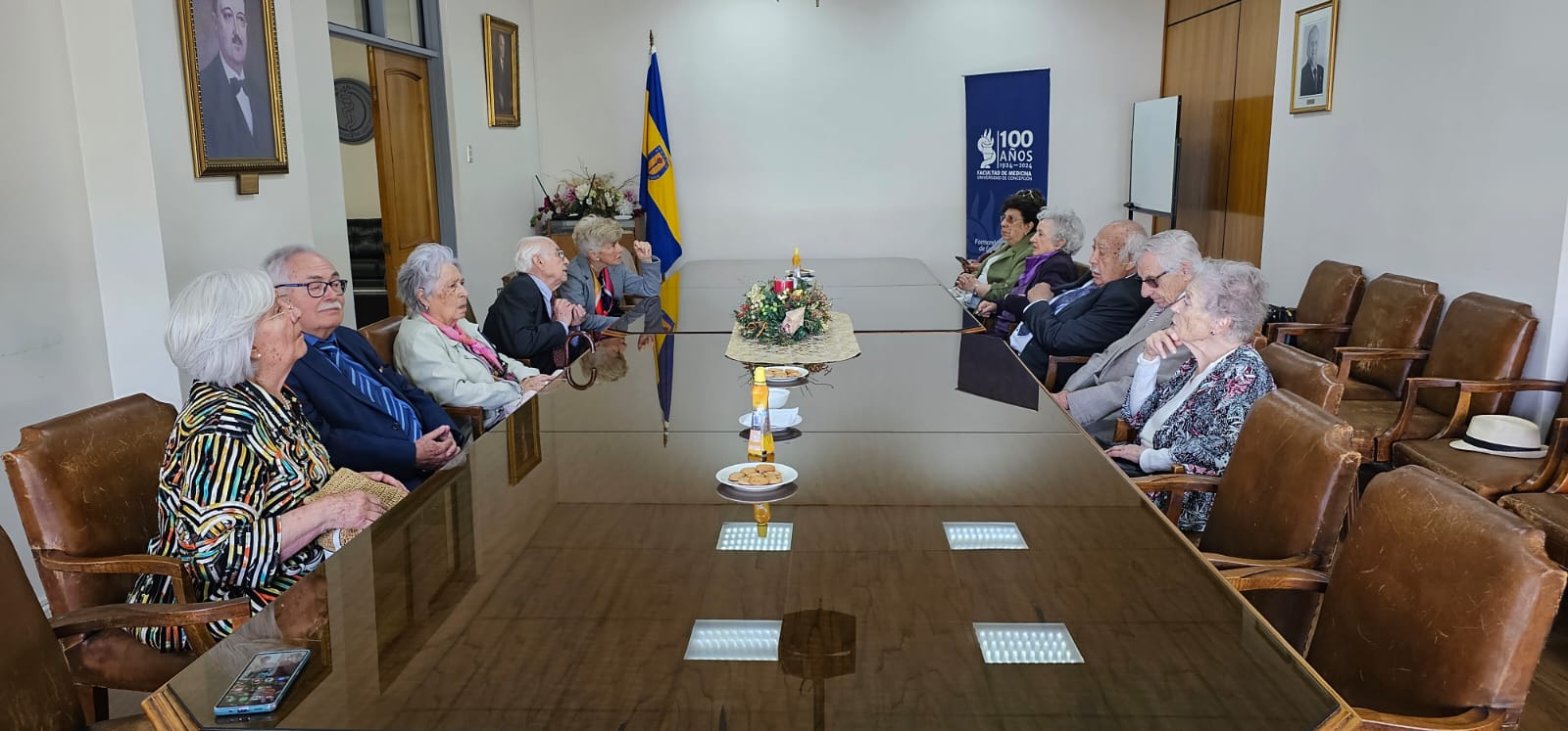 Ex estudiantes de la generación de Medicina 1964 se reencontraron tras 60 años de egresar de la Universidad de Concepción. La jornada comenzó el 28 de noviembre durante la mañana con un recorrido por el Campus para luego compartir una reunión con la decana de la Facultad de Medicina, Dra. Ana María Moraga P., en la Sala de Consejo de la unidad académica.