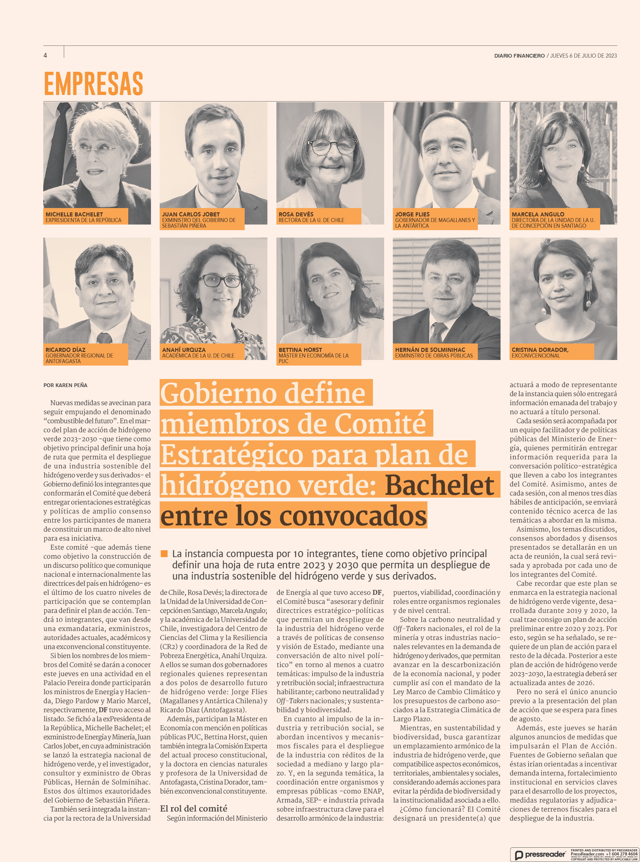 Gobierno define miembros de Comité Estratégico para plan de hidrógeno verde: Bachelet entre los convocados