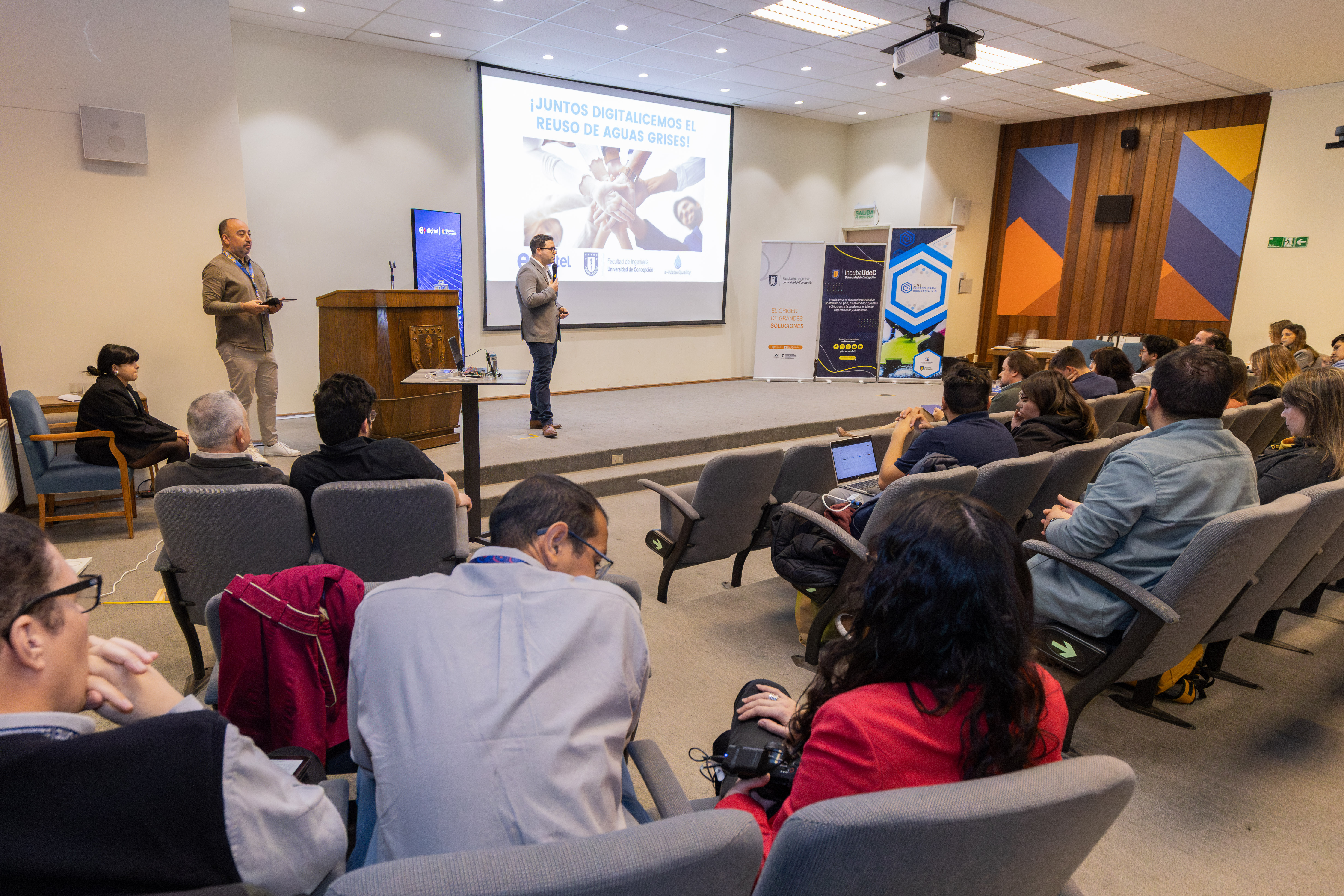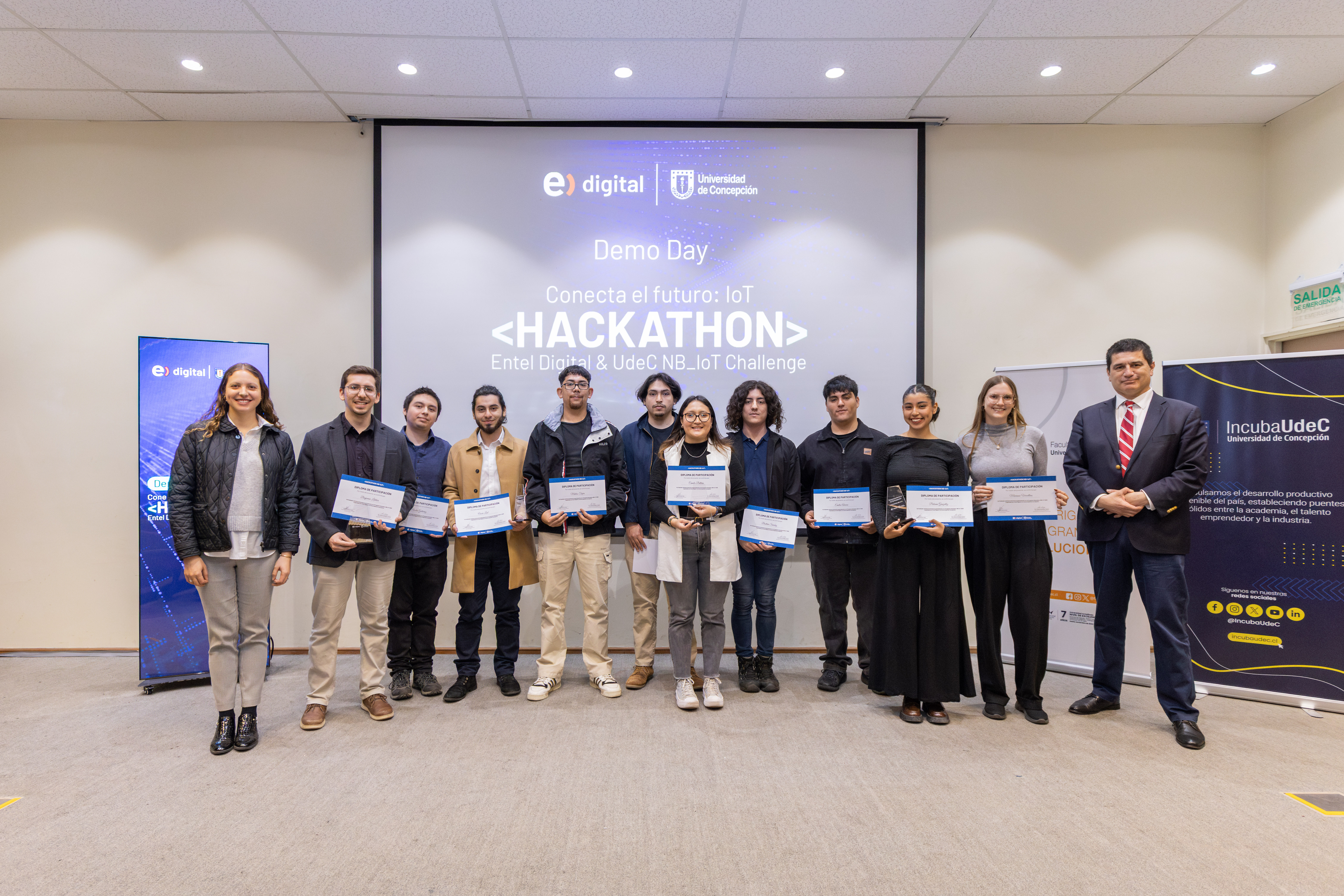 La jornada se desarrolló en el auditorio de la Facultad de Ingeniería, hasta donde llegaron los 12 equipos competidores además de autoridades académicas, representantes de Entel Digital y la plataforma de apoyo al emprendimiento tecnológico de la Universidad de Concepción, IncubaUdeC, para premiar en tres categorías -Seed!, Start! y Scale!- a las iniciativas con mayor proyección y que lograran un mejor desempeño durante el pitch de presentación al jurado del encuentro.