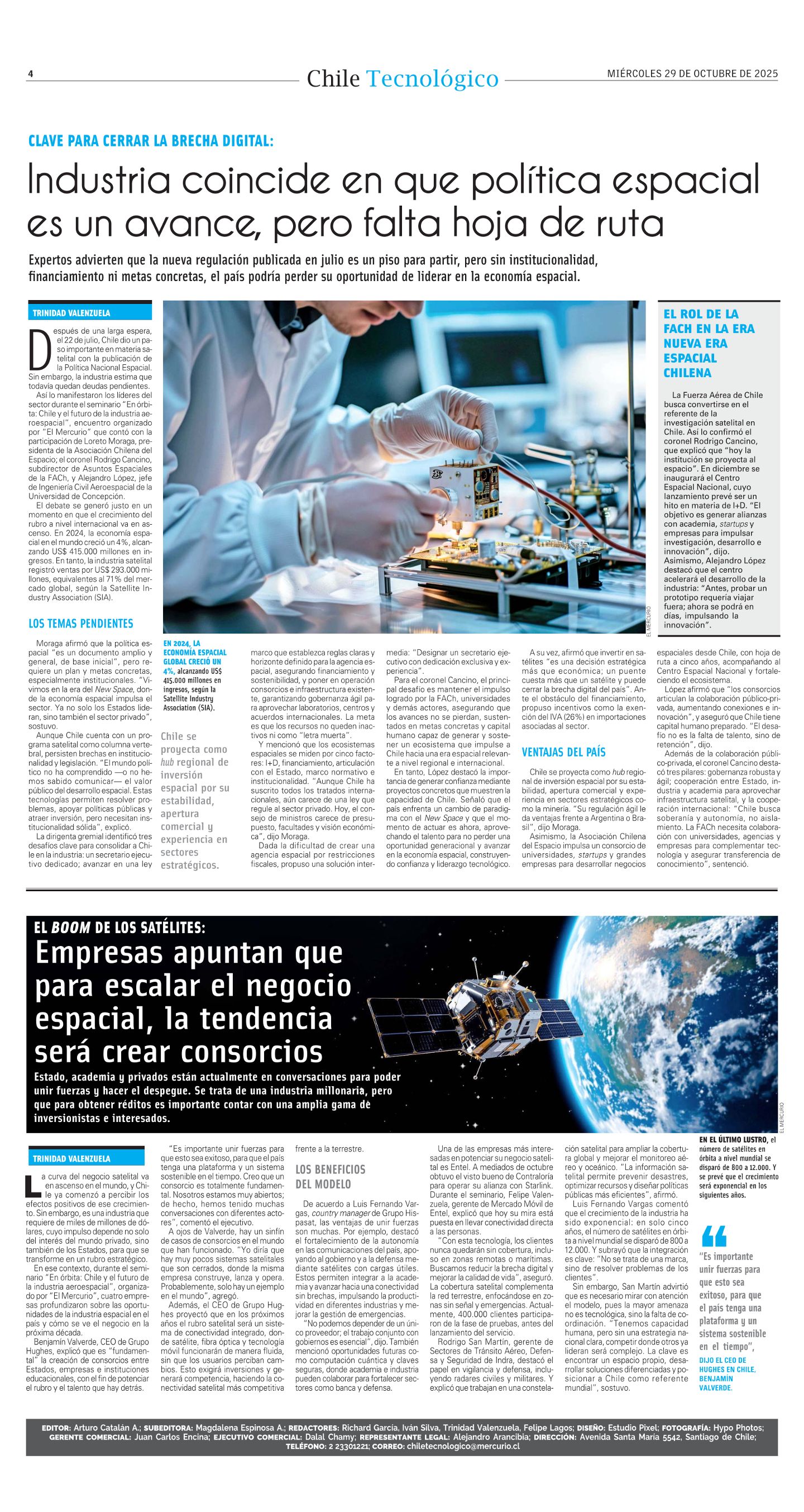 La industria valora la nueva Política Espacial chilena como un avance, pero advierte falta de institucionalidad y metas claras. El Jefe de Carrera de Ingeniería Civil Aeroespacial UdeC, Dr. Alejandro López Telgie, subraya que Chile debe actuar ya para no perder una oportunidad generacional, destacando que invertir en satélites es estratégico.
