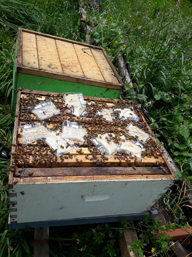 El proyecto también integró aceites esenciales —principalmente de orégano, laurel y eucalipto— que fueron encapsulados dentro de la matriz alimentaria, una alternativa natural contra la Varroa. Esta tecnología permite una liberación sostenida de compuestos acaricidas dentro de la colmena, reduciendo la presencia del ácaro sin afectar la actividad normal de las abejas ni dejar residuos en la miel o la cera.