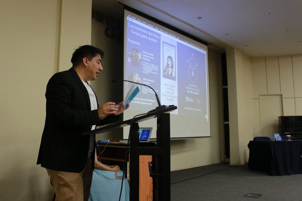 Este poemario fue presentado en el Auditorio Manuel Rioseco del campus Los Ángeles ante el público que pudo compartir palabras e impresiones con el autor, además de disfrutar de una pieza musical en violín y un breve conversatorio.