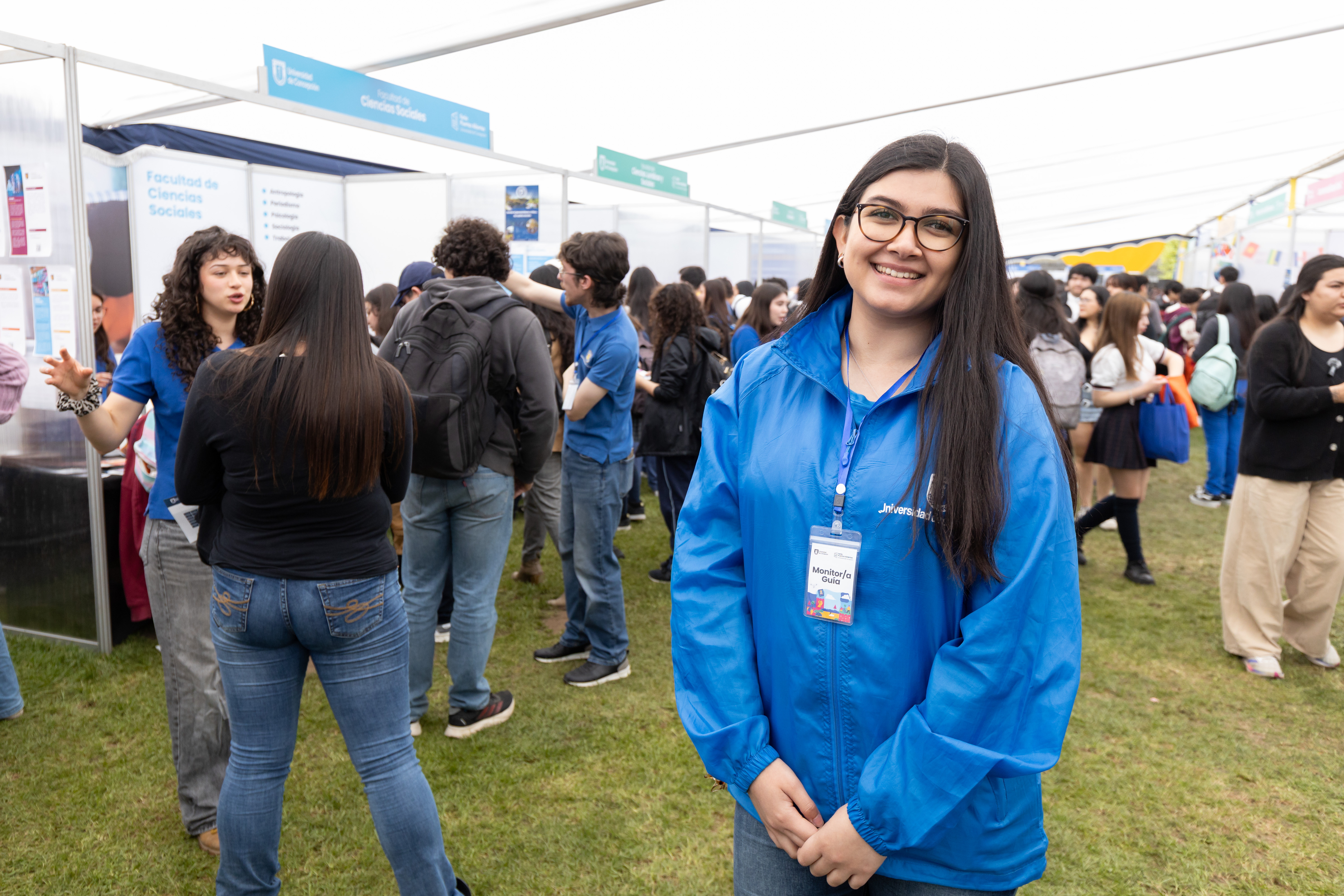 Uno de los ejemplos más claros de identidad es la estudiante de quinto año de Periodismo UdeC, Bárbara Arias Oyarzún. Monitora desde el año 2023, Bárbara pidió permiso en su práctica profesional que desarrolla en Santiago para venir a trabajar a la Feria Puertas Abiertas.