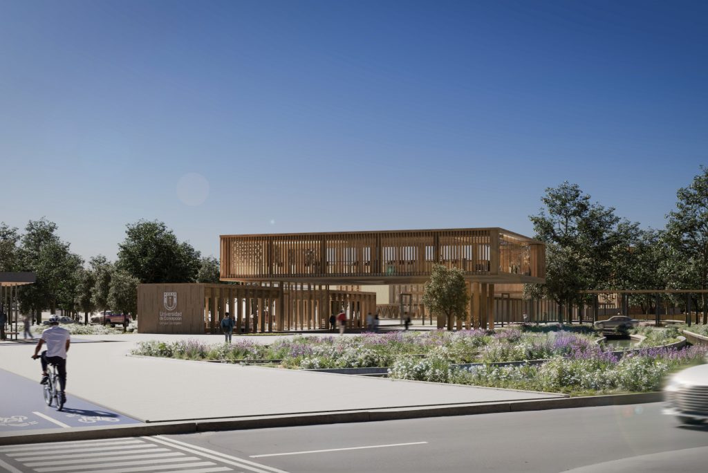 “El Centro de Innovación y Desarrollo de Los Ángeles será la primera obra relevante del nuevo campus, con una volumetría contemporánea, espacios colaborativos y una integración armónica con el entorno natural. Este edificio estará orientado al desarrollo de instalaciones técnico-científicas destinadas a la investigación aplicada en nuevos usos de la madera, la síntesis y caracterización de materiales basados en fibras naturales, y el prototipado y validación de aplicaciones derivadas de dichos materiales, entre otras líneas de trabajo”, destacó la Directora del Campus Los Ángeles.
