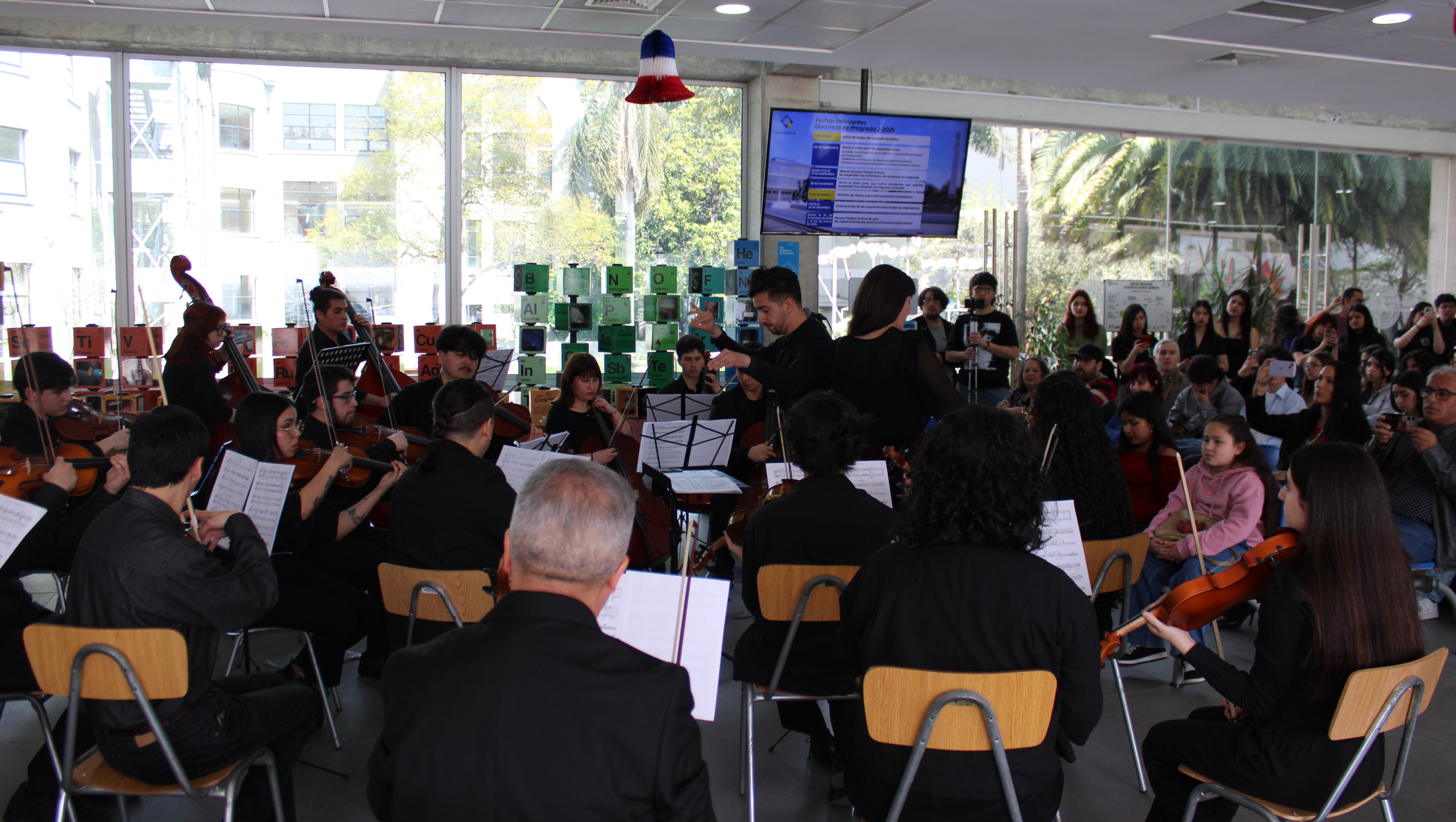 “En nuestro repertorio siempre buscamos integrar música chilena, es una orquesta que se reúne una vez a la semana. Recibimos esta invitación del director del Departamento de Música, Fernando Lillo Moscoso, con quien tenemos una relación de amistad de años, y este concierto que se creó fue muy bonito. Para todos estos estudiantes que van a egresar del liceo, tener esta posibilidad artística en la universidad es super motivante e inspirador”, expresó el profesor.