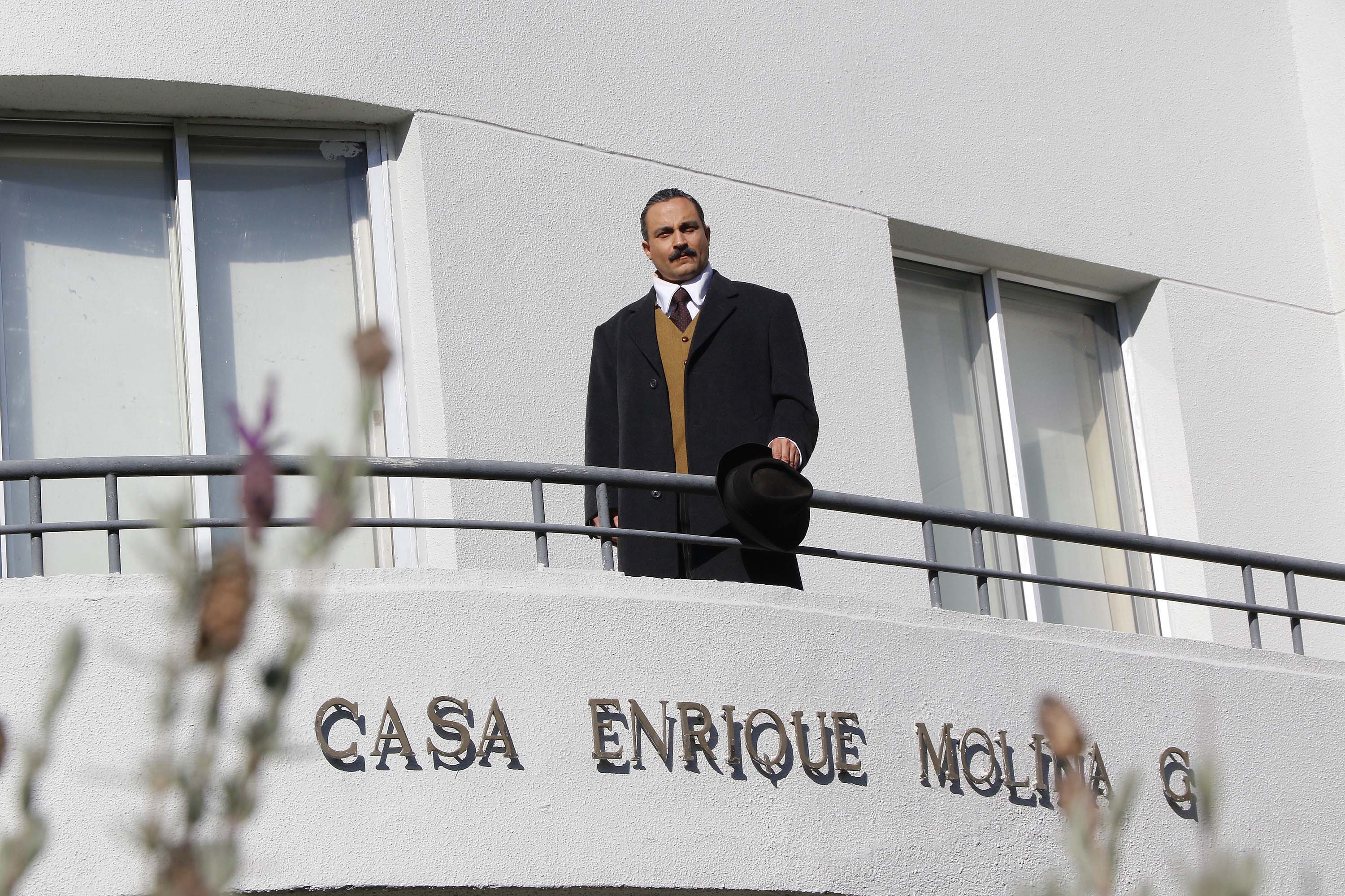 Vestido a la usanza de la época, Molina, encarnado por el actor Jorge Briano, visitó su antiguo despacho en la Casa Enrique Molina -actual Rectoría- e incluso saludó por el balcón agitando su mano como solía hacerlo.