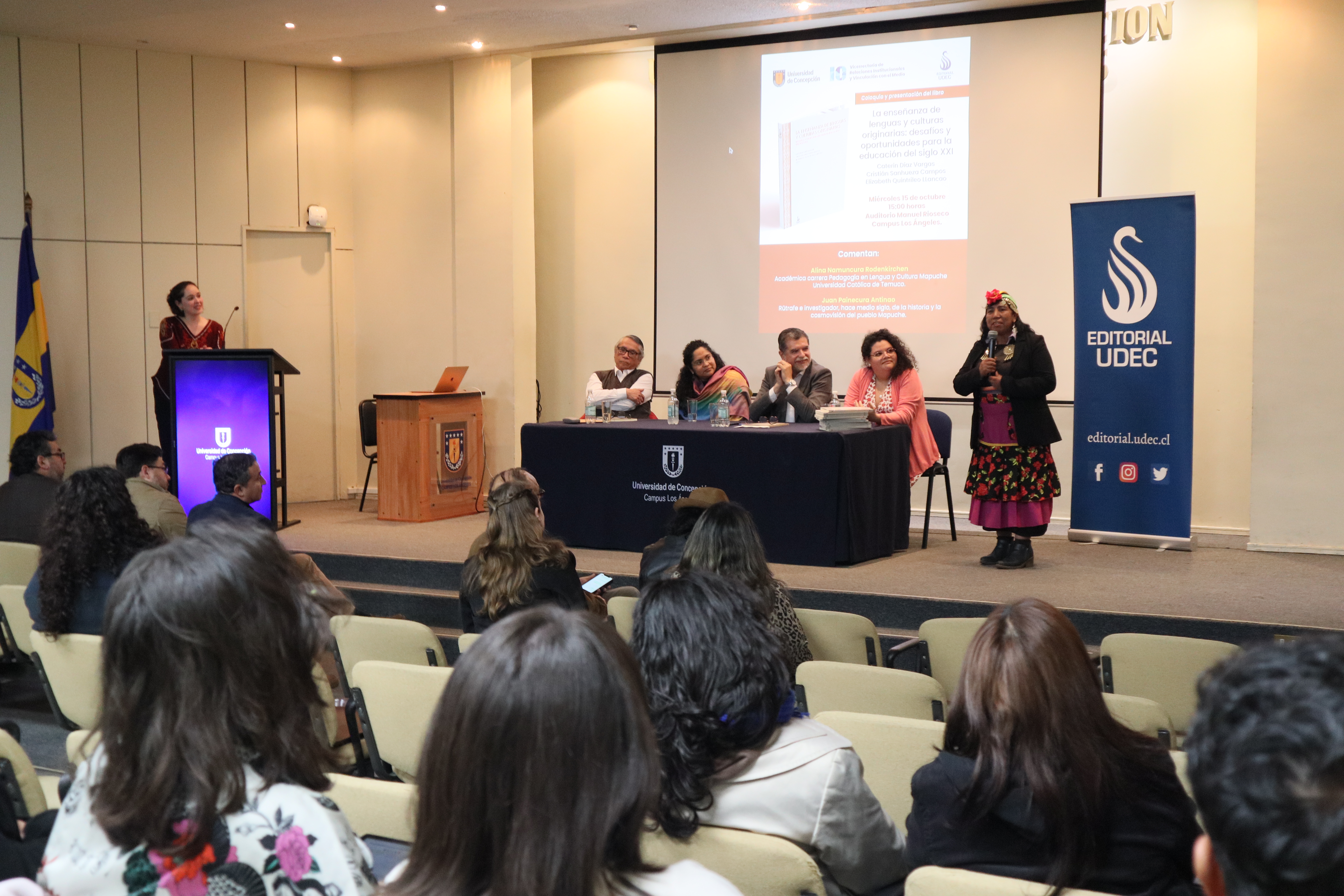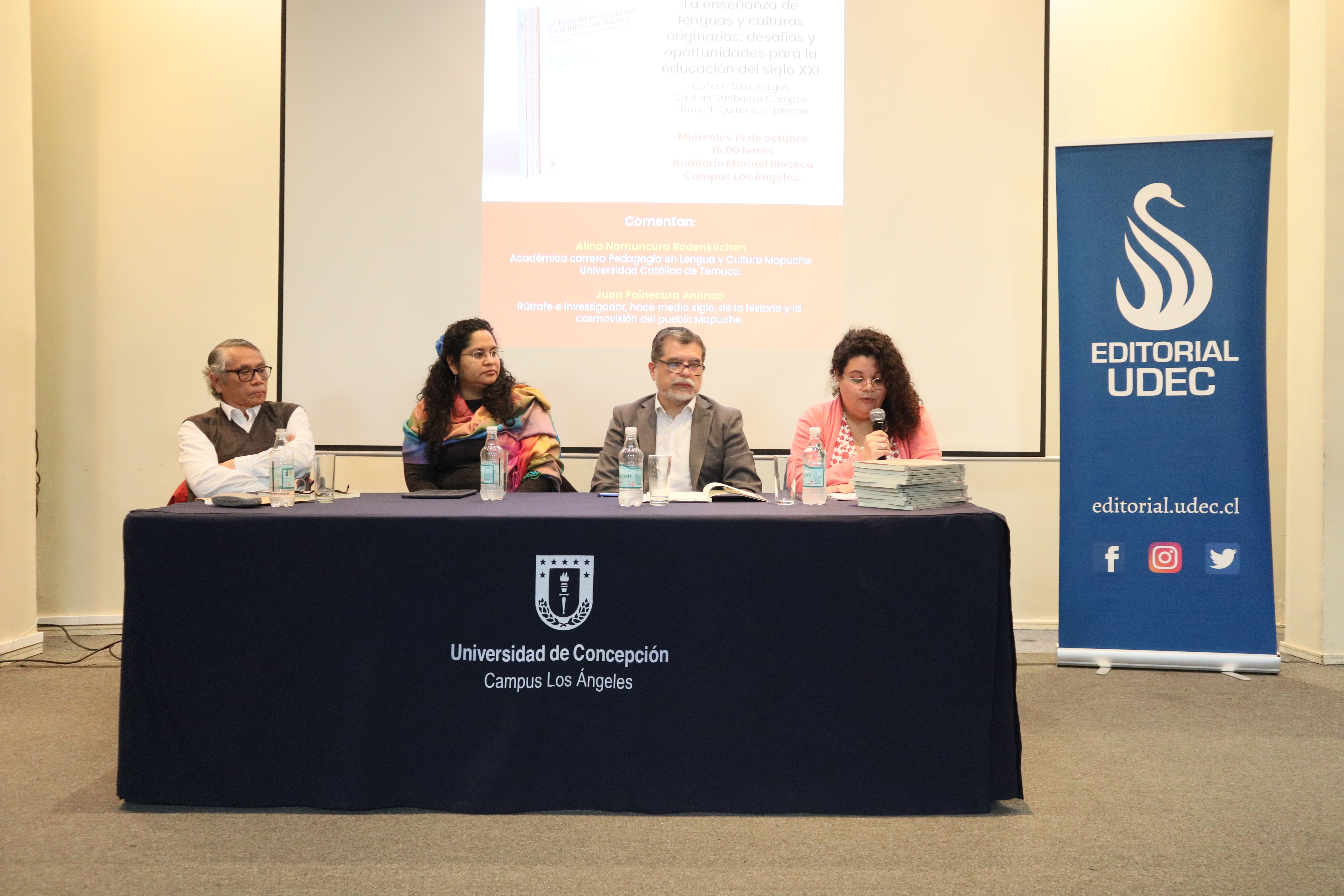 El Campus Los Ángeles de la Universidad de Concepción fue el escenario para la presentación del libro “La enseñanza de lenguas y culturas originarias: desafíos y oportunidades para la educación del siglo XXI”, de las académicas Caterin Díaz Vargas, Cristian Sanhueza Campos y Elizabeth Quintrileo Llancao.