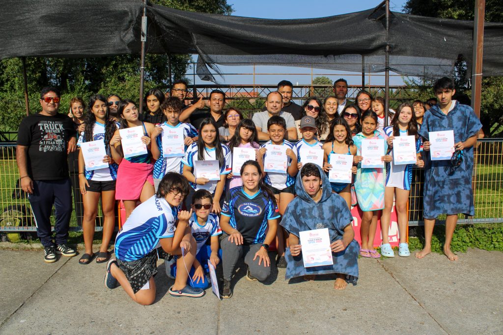 La instancia culminó con la entrega de certificados a todas y todos los niños, niñas y adolescentes que participaron en el Primer Encuentro Escolar Comunal de Natación.