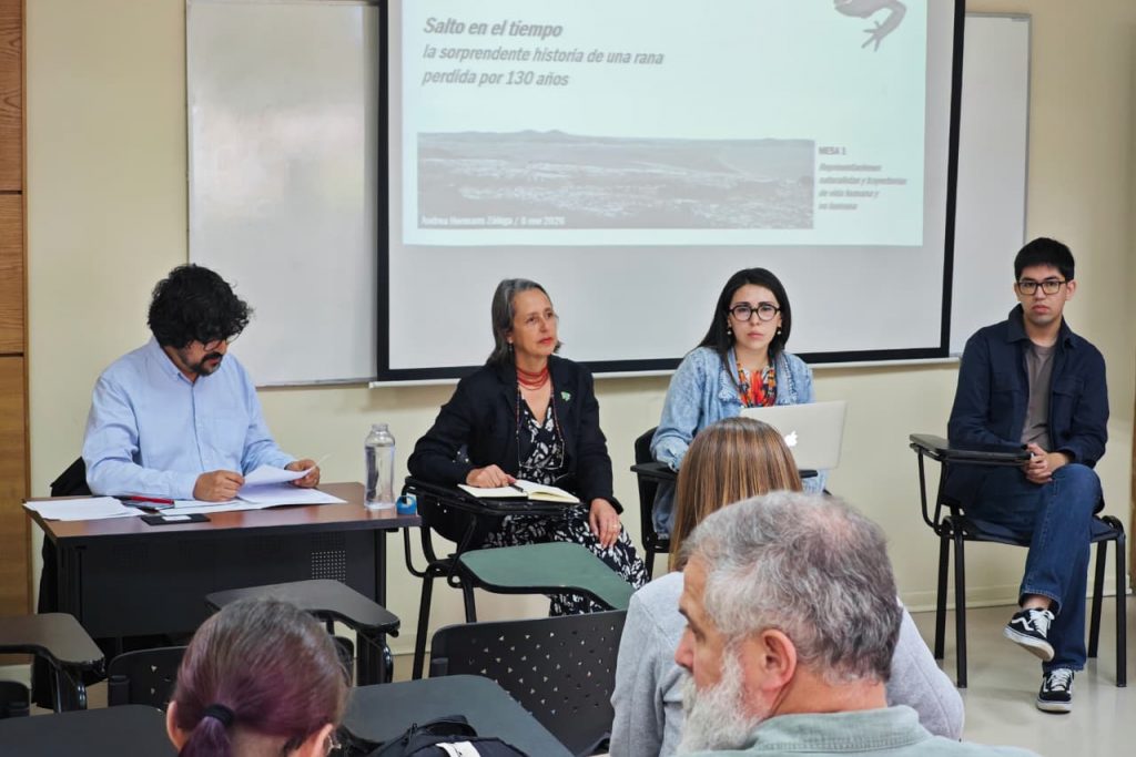 Esta instancia reunió a la Mag. Carolina Opazo, Dr. Jorge Olea (Universidad de La Frontera), Dra. Marcela Salgado (Universidad de Concepción) y a la Dra. Mónica Ortiz (Universidad de Concepción), quienes dialogaron desde perspectivas complementarias sobre las ecologías, los conflictos, los procesos históricos y las disputas territoriales, poniendo en valor saberes situados y enfoques críticos para comprender los desafíos contemporáneos de los territorios.