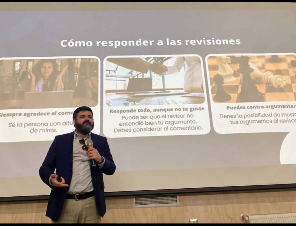 Además, al cierre del evento, el Editor en Jefe de la Revista Academia y Negocios UdeC, Dr. Ariel Soto Caro, ofreció un taller sobre publicaciones en el que se conversó sobre recomendaciones para autores y revisores, así como estrategias para enfrentar de manera eficiente el proceso de revisión por pares. Además, se abordó el uso adecuado de la inteligencia artificial en el ámbito de las publicaciones académicas.