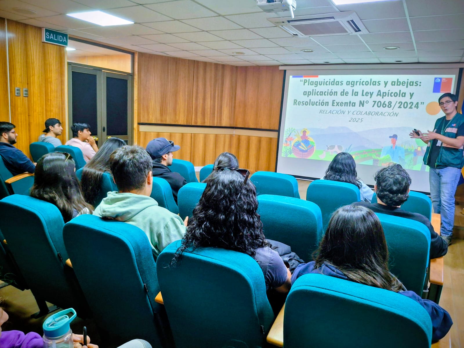 Reconociendo la apicultura como una actividad silvoagropecuaria estratégica, funcionarios del Servicio Agrícola y Ganadero, ofrecieron una charla a estudiantes de la Facultad de Agronomía de la Universidad de Concepción, quienes conocieron de primera fuente los alcances de la nueva Ley Apícola (Ley N° 21.489).