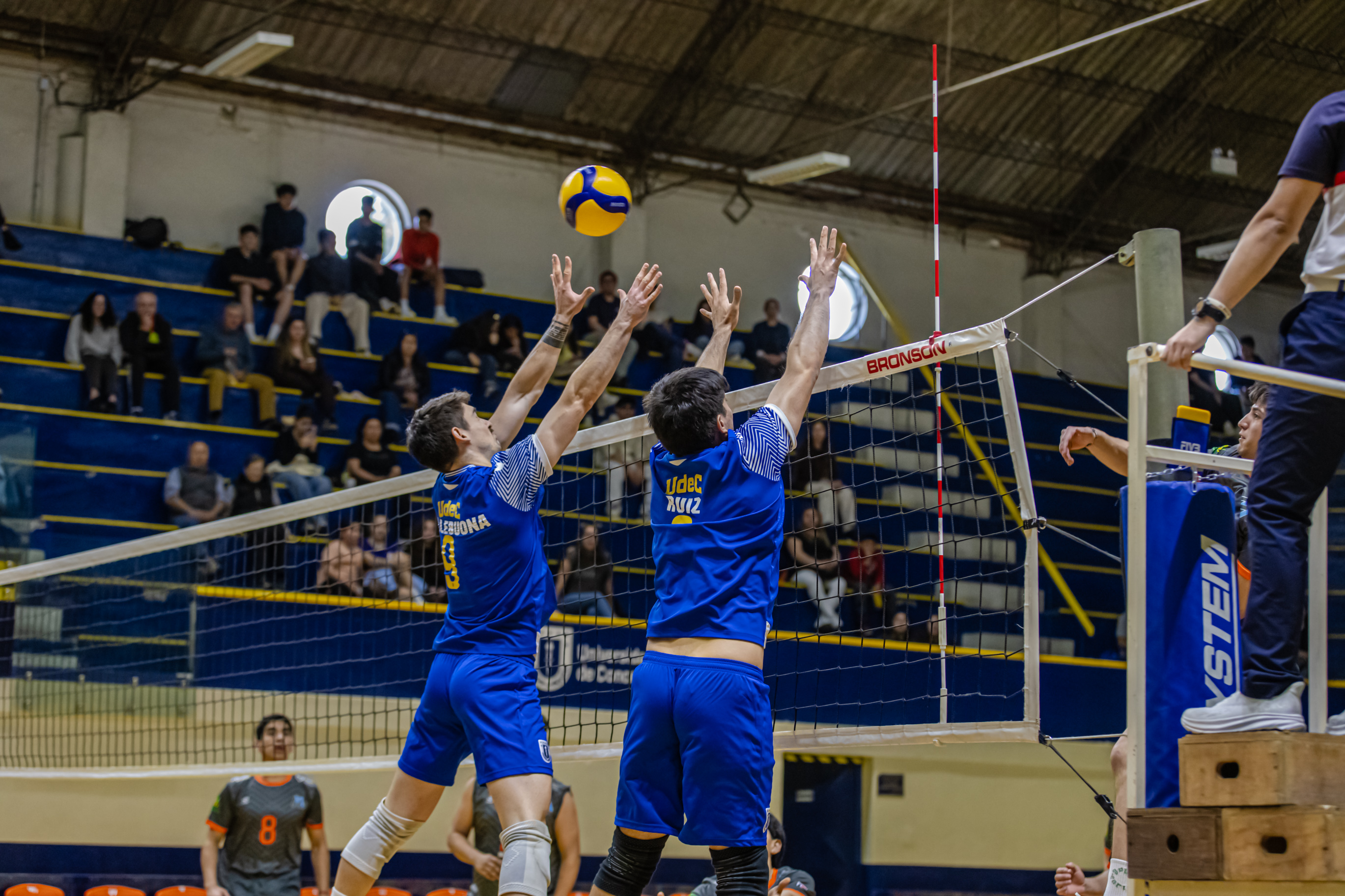 A continuación, remache paralelo de Vicente Ruiz y Guillermo Jiménez, entrenador de la visita, solicitó tiempo técnico. Benjamín Ruiz castigaba desde el opuesto y la UdeC seguía firme su marcha en el set.