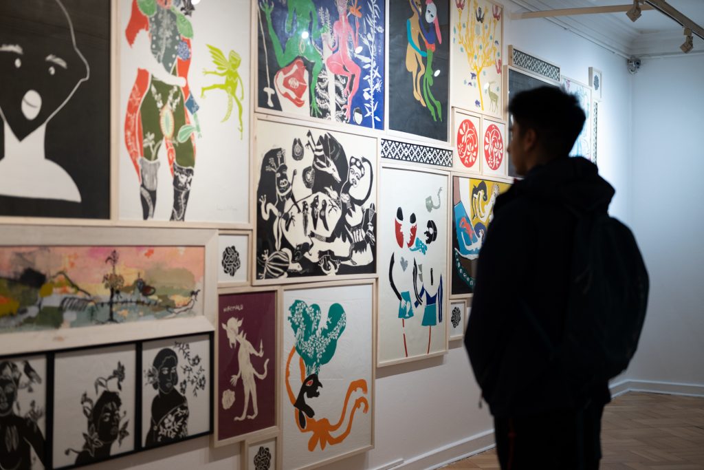 La muestra reúne xilografía, litografía, grabado en metal, pintura y greda de Quinchamalí, que dialogan entre la memoria, el territorio y la tradición artesanal.