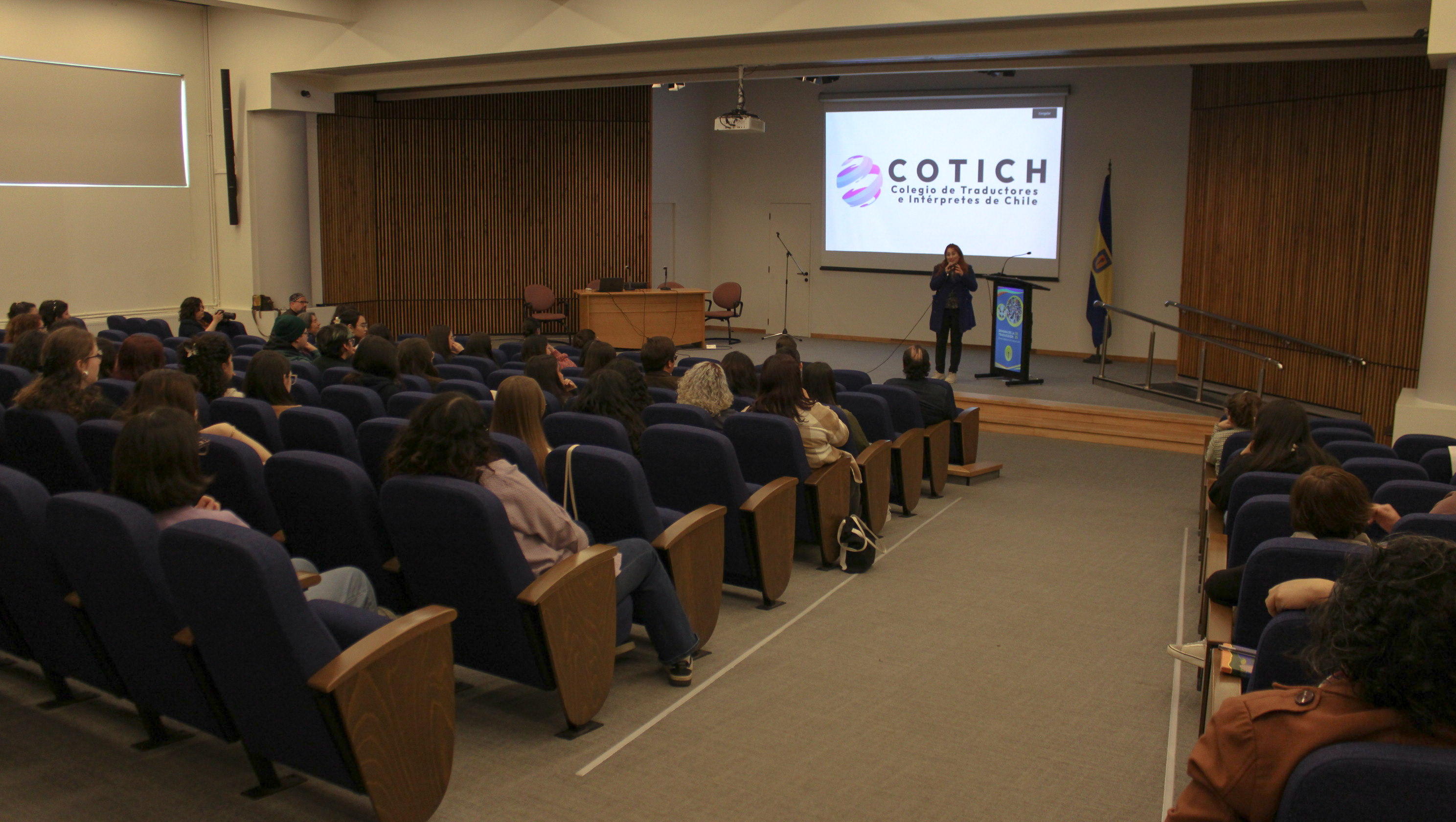 Bajo el lema “Diversidad en la traducción”, se inició a la actividad con la charla “Ética profesional”, a cargo de la presidenta del Colegio de Traductores e Intérpretes de Chile (COTICH) Katherinne Cádiz, y la ponencia “Lenguas en el Estado español: políticas, usos y desafíos de la diversidad lingüística”, presentada por Usoa Olea Bernaola y Pablo Regueira Piñeiro (Universität Leipzig).