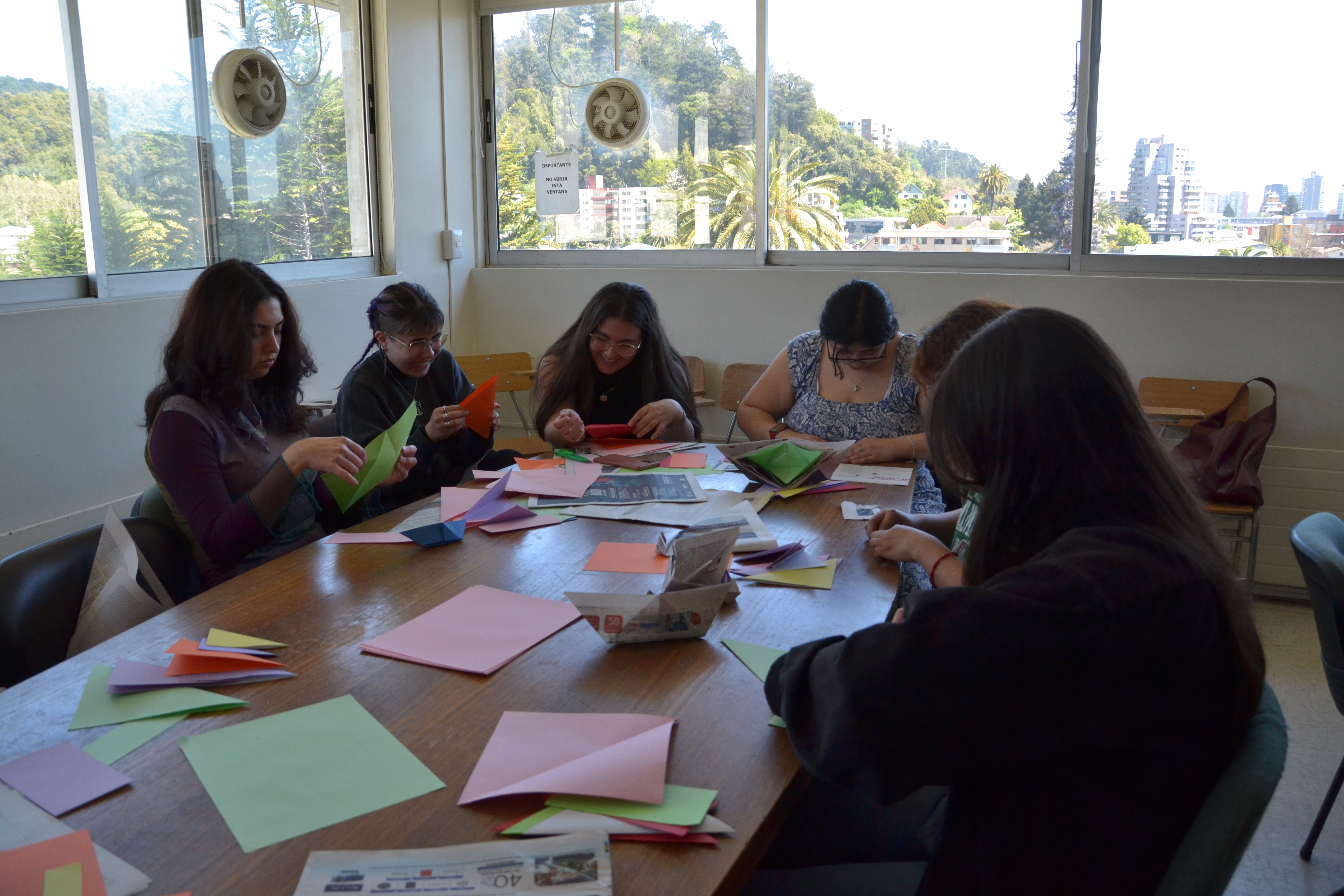 Asimismo, la creatividad continuó con el Taller de Origami, impartido por la profesora de japonés Belén Mora, y el Taller de Marcapáginas tejidos con papel, dirigido por la profesora de francés Isabel Alvarado Gutiérrez, ambos espacios que invitaron a la comunidad universitaria a compartir, relajarse y explorar el vínculo entre arte, materialidad y lenguaje.