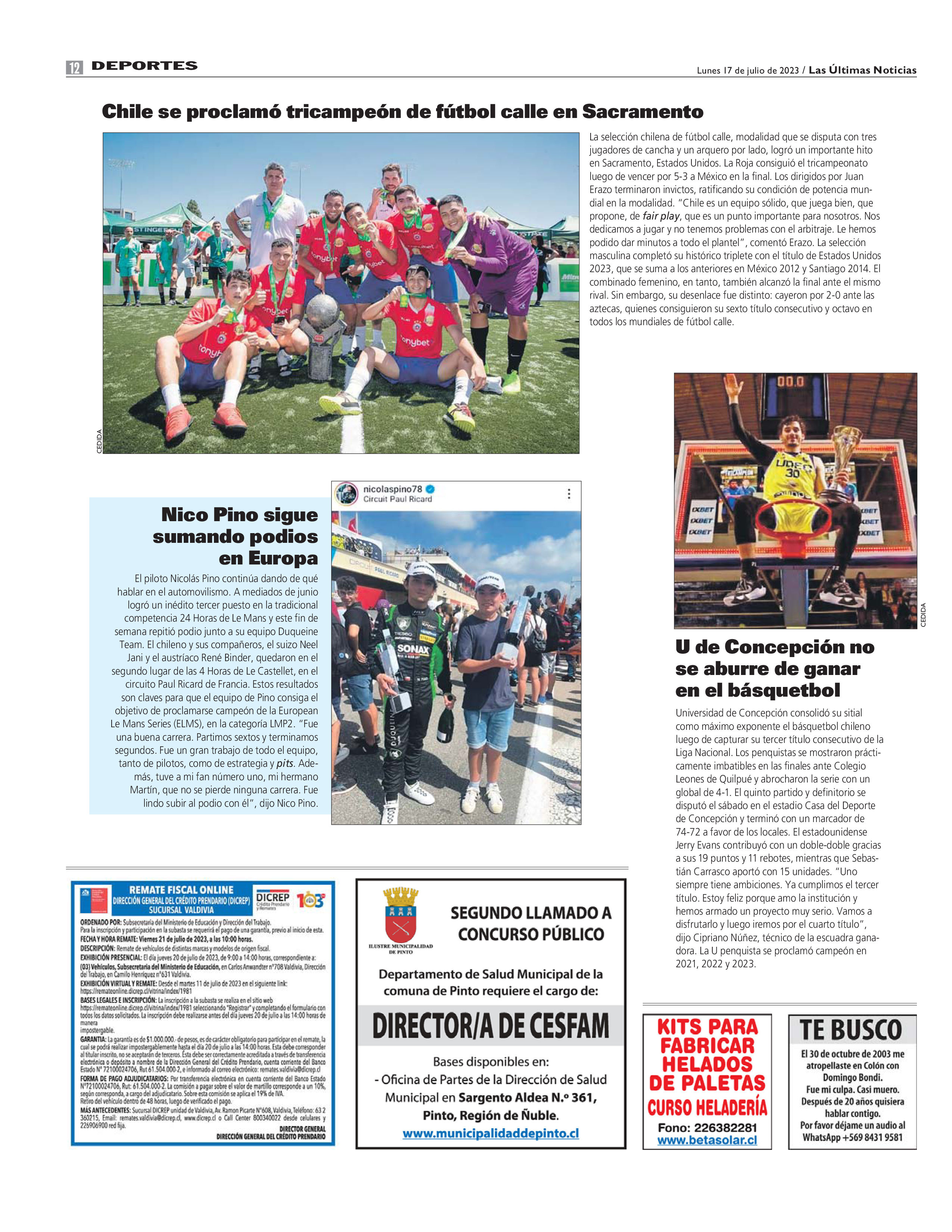 Universidad de Concepción logra su tercer título consecutivo en la Liga Nacional de Básquetbol con un marcador de 74-72 ante Colegio Leones de Quilpué. Jerry Evans y Sebastián Carrasco destacaron en la victoria. El técnico Cipriano Núñez anticipa ambiciones por más títulos.