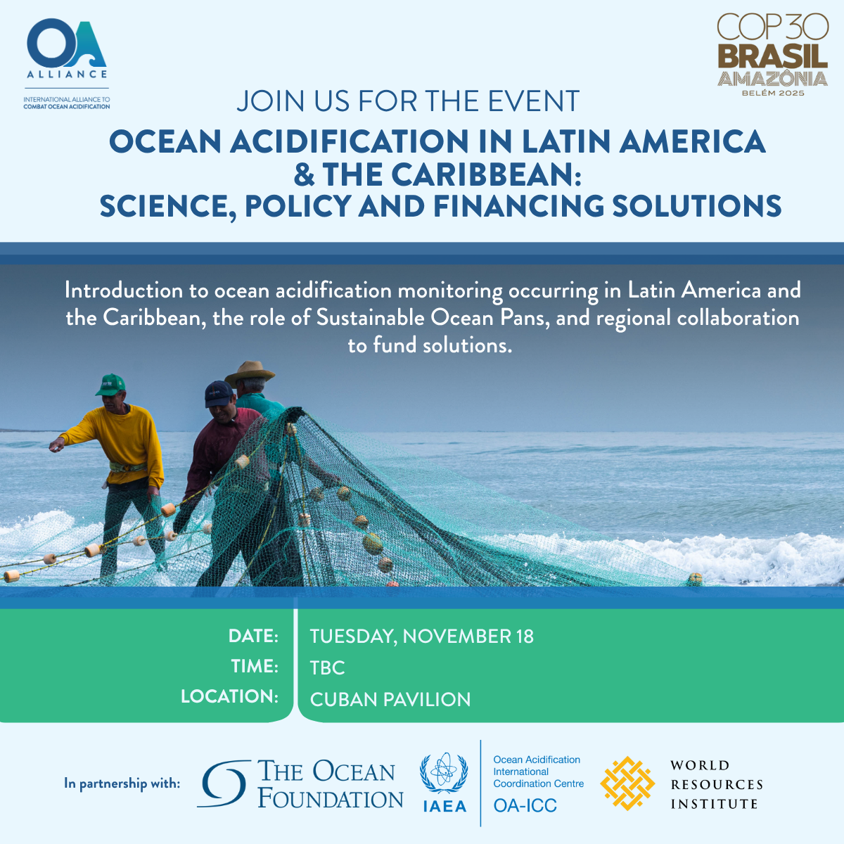 El documento, titulado “Taking Action on Ocean Acidification in Latin America & the Caribbean: Science to Policy Leadership”, será presentado en el side event “Acidificación del Océano en América Latina y el Caribe: Ciencia, Políticas y Soluciones de Financiamiento”, en el Pabellón de Cuba.