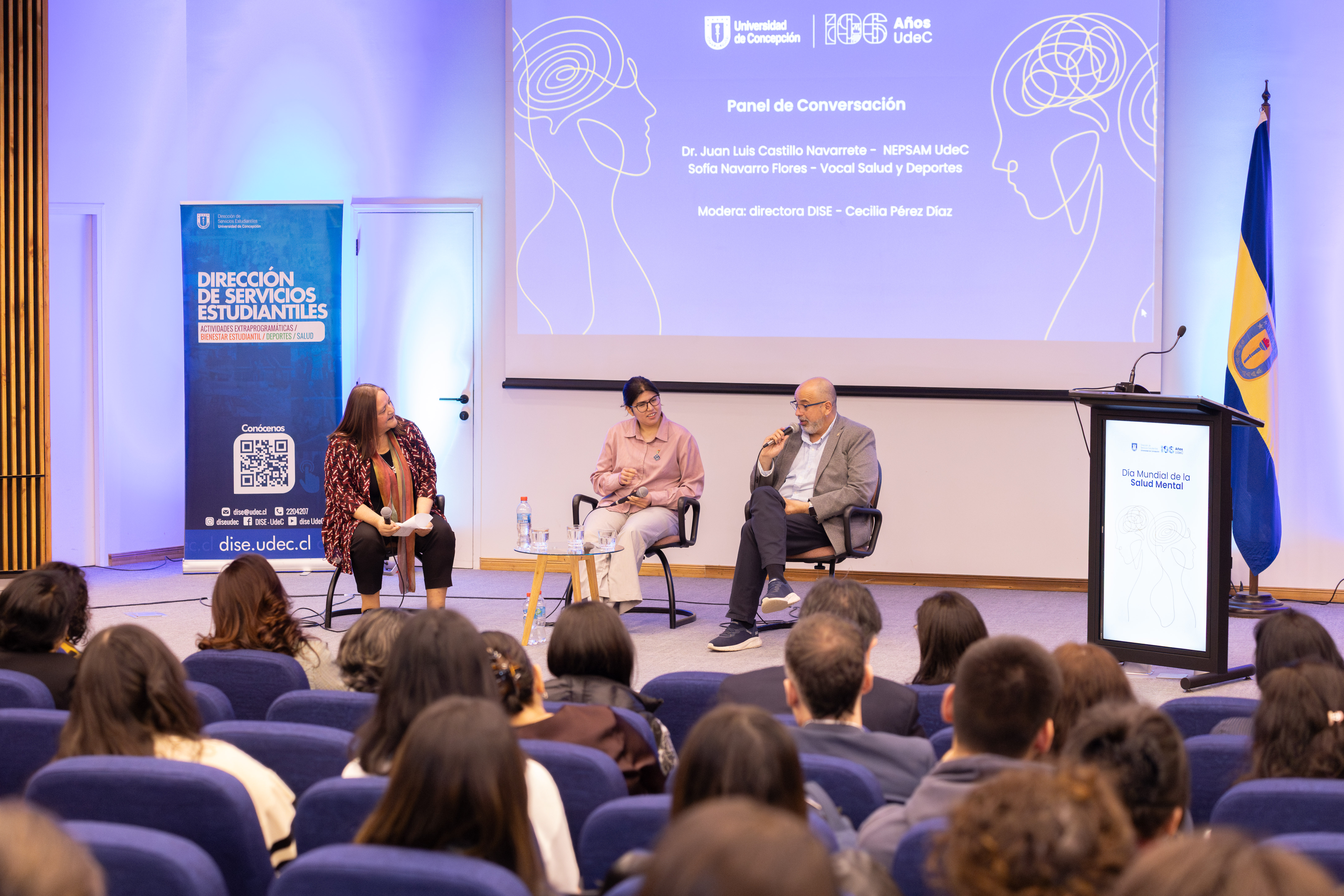 En el marco de una nueva conmemoración del Día Mundial de la Salud Mental, y como parte de las acciones contempladas en el programa UdeC Te Acompaña de la Dirección de Servicios Estudiantiles (DISE), la Universidad de Concepción desarrolló este miércoles 8 de octubre una completa jornada de análisis, conversación y sensibilización en torno al bienestar universitario.