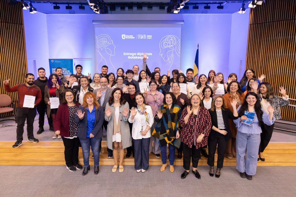 En esta misma instancia se entregaron diplomas a 24 nuevos y nuevas Gatekeepers o agentes comunitarios para la prevención del suicidio. Este programa, impulsado por el Ministerio de Salud en la Región del Biobío junto a la Red de Colaboración de Instituciones de Educación Superior (CIES) —de la cual forma parte la UdeC a través de la DISE— buscó dotar a la comunidad de herramientas para detectar y abordar tempranamente situaciones de riesgo.