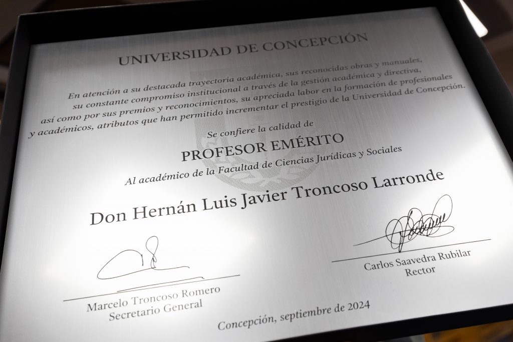 La Universidad de Concepción invistió de manera póstuma como Profesor Emérito al académico de la Facultad de Ciencias Jurídicas y Sociales, Hernán Troncoso Larronde.