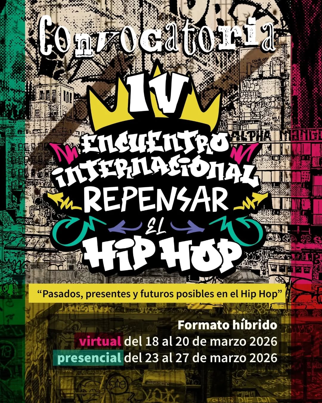 Este encuentro cuenta con una convocatoria dirigida a académicos y académicas que investigan el hip hop desde perspectivas artísticas, tecnológicas, de género, musical, social, decolonial, entre otras. Sin embargo, también está abierto a los y las cultoras del movimiento: raperos y raperas, bailarines, productores, filmmakers y toda persona vinculada al hip hop, tanto desde la práctica como desde la reflexión.