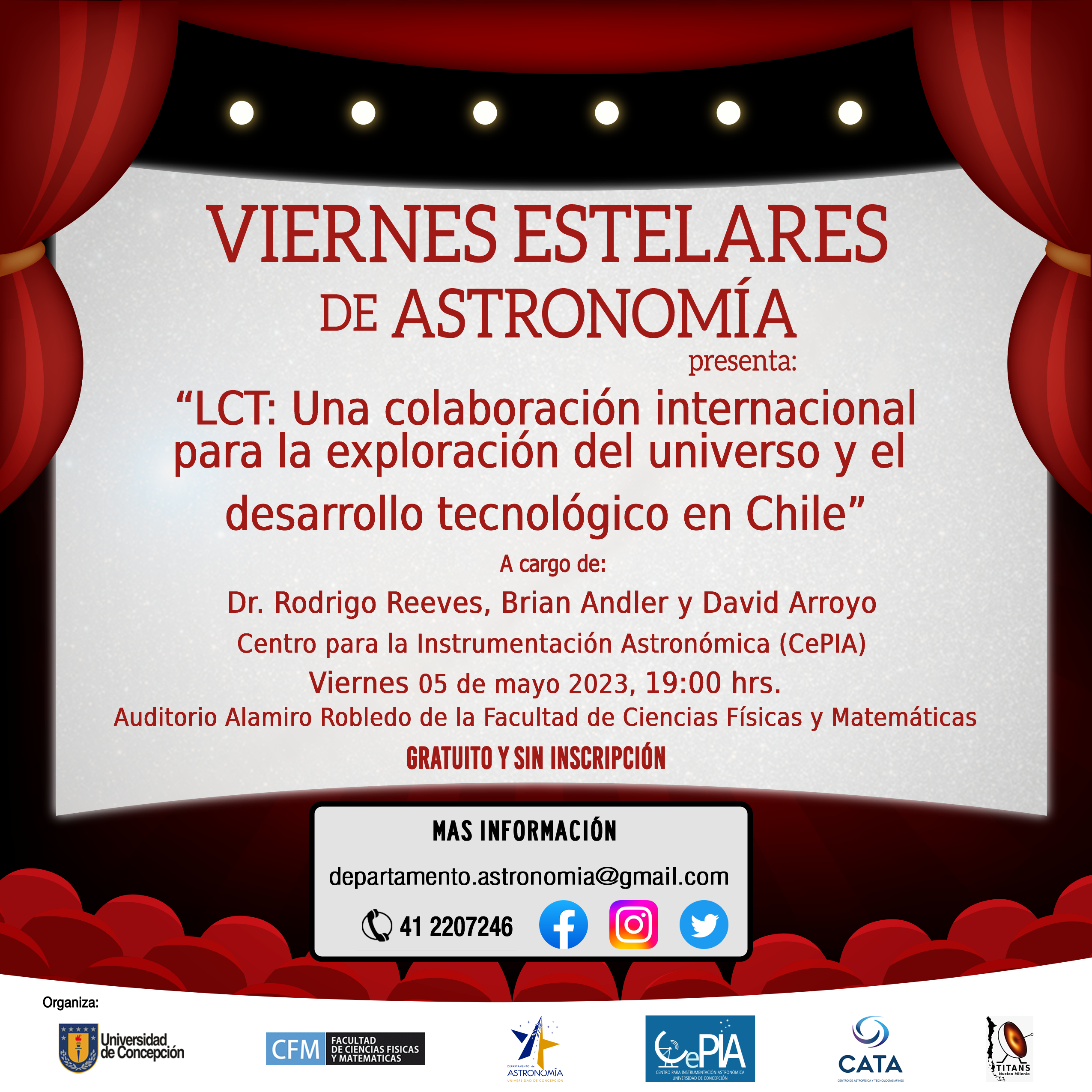 La cita es el próximo viernes 05 de mayo a las 19:00 horas en el auditorio de la Facultad de Ciencias Físicas y Matemáticas UdeC, frente a la Laguna Los Patos. La instancia es abierta a todo público de todas las edades, solo se pide puntualidad y ánimo de aprender sobre el proyecto LCT.
