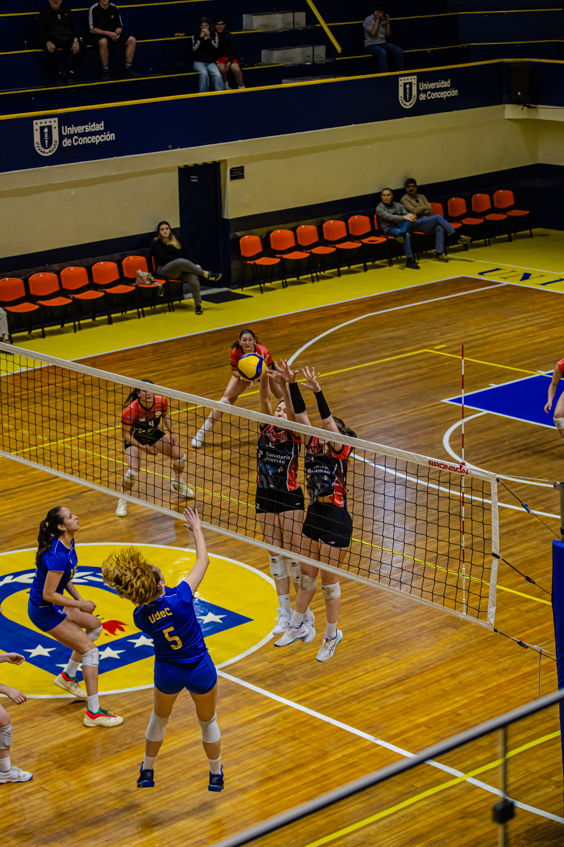 Al rojo vivo el primer parcial. Alemán volvió a pasar arriba con el 23-22, pero la UdeC de la mano de Martínez y un gran bloqueo de Miranda tuvo el primer set point. ¡Se cerró de inmediato el set! Error visitante que no logró llevar la pelota al otro lado de la red. La Universidad de Concepción se llevó el parcial inicial por 25-23.